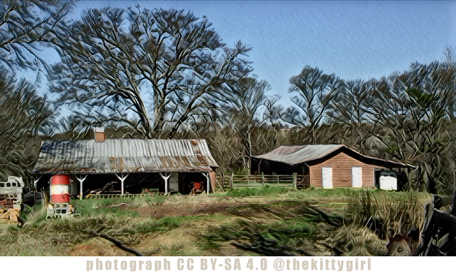 These two barns are located beside a short, residential road that ends at a small farm. The property is well-maintained, but I am not sure if it is still being used as a working farm, or not. The first barn appears to be the older of the two structures. There is an awning over the entire front of...