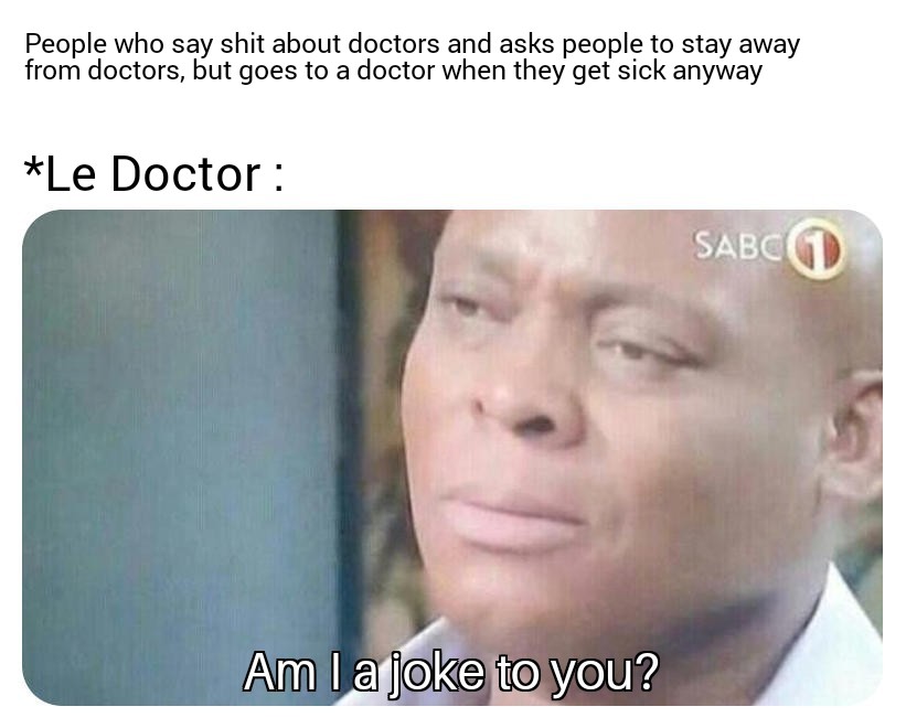 Well, these are not memes made just for fun. I as a doctor have encountered people who are quite ungrateful and talks about things they have no idea about. If you have a business degree, you're not supposed to begiving people medical advice. If you have an engineering degree, you shouldn't be giving people medical advice. If you have a degree in space science, you shouldn't be giving people medical advice. If you have a law degree, you shouldn't be giving people medical advice! You see where I'm going with this...?