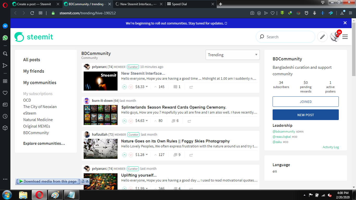 - You directly go to the community feature on the steemit website, find your community of interest and subscribe. If you click on My Communities you'll see the communities you've already subscribed to.