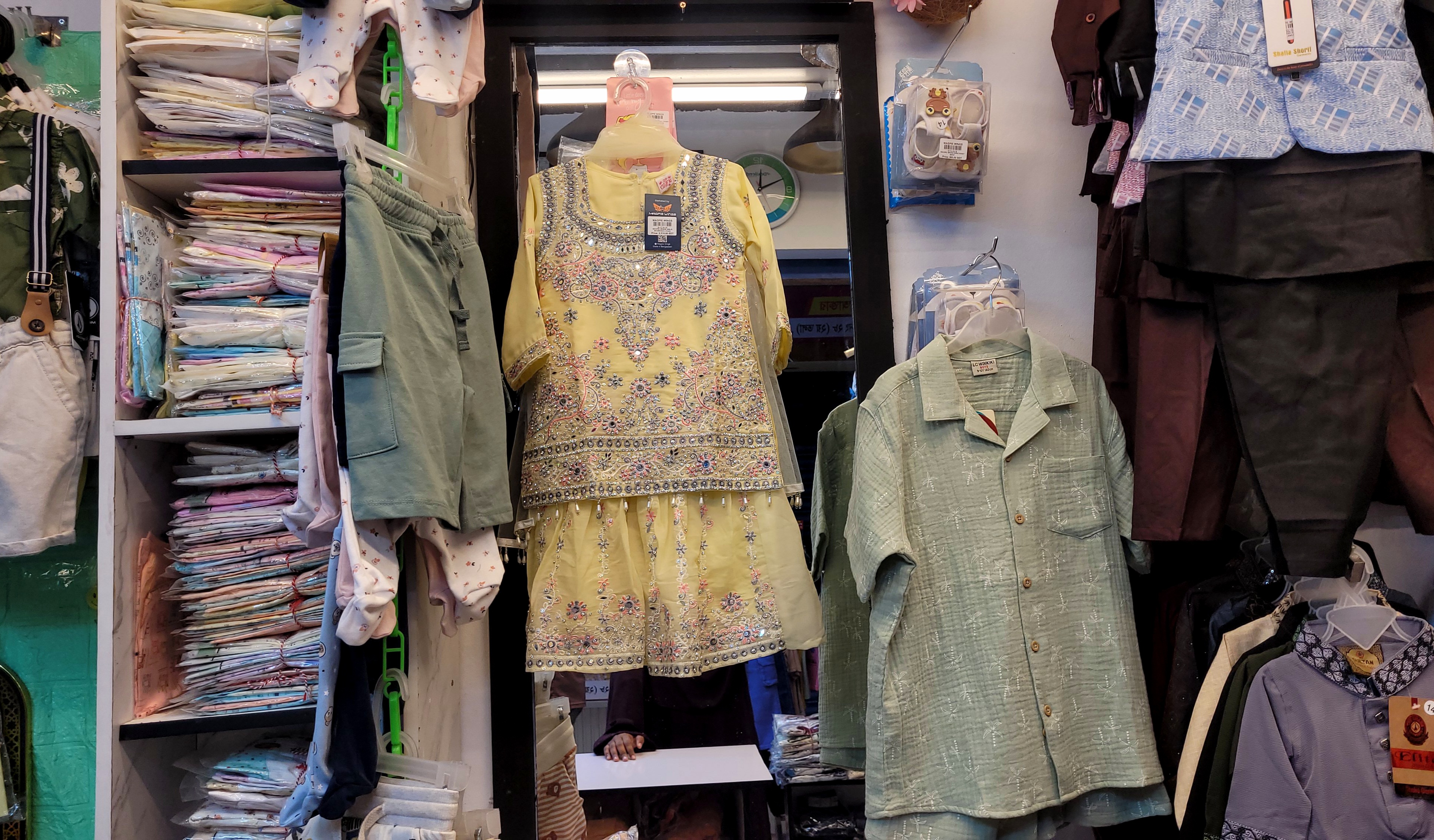 However, there are many other types of clothes collections here. Among which there are many beautiful clothes for young girls. In addition, there are Punjabis, shirts, jerseys, pants, clothes for boys. There are also many beautiful coats for boys. Which look very beautiful on young children. The collection of clothes for very young children here is very small. But the clothes that are there are very beautiful. For example, there are many beautiful party dresses, there are also many comfortable dresses, but there are many collections of clothes for those between the ages of five to 10 or 12. They have arranged these clothes beautifully inside and outside the store.