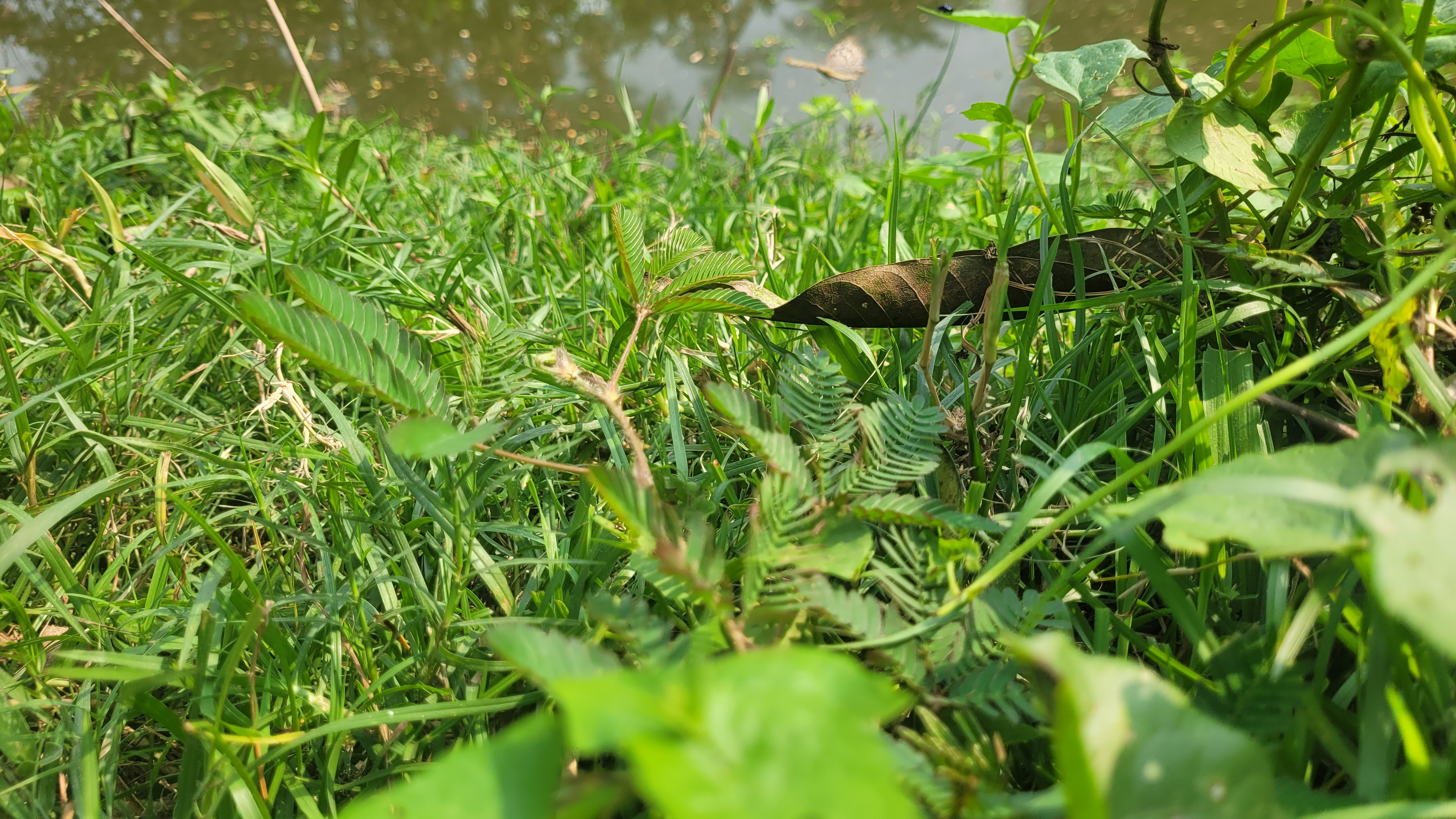 A beautiful thing caught my eye in this beautiful place surrounded by greenery. It is a flower tree. The name of this tree is the shy flower tree. It has become many around a place above the pond. And when you catch them, they fall down. I like this thing very much. I am sharing this scene with you in the photographs. I am also sharing some flowers blooming here, pictures of them.