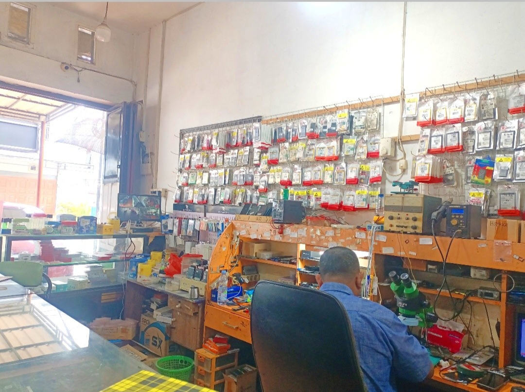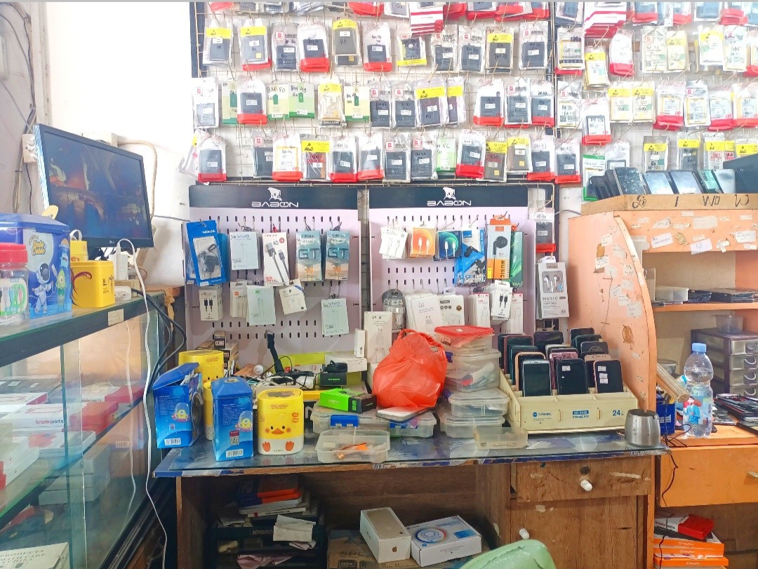 Di meja yang panjang, tepatnya .meja yang mereka gunakan untuk memperbaiki handphone ada banyak sekali handphone yang belum, sedang dan yang sudah mereka perbaiki. Jika handphone yang sudah selesai diperbaiki akan mereka susun dengan rapi di tempat yang khusus.