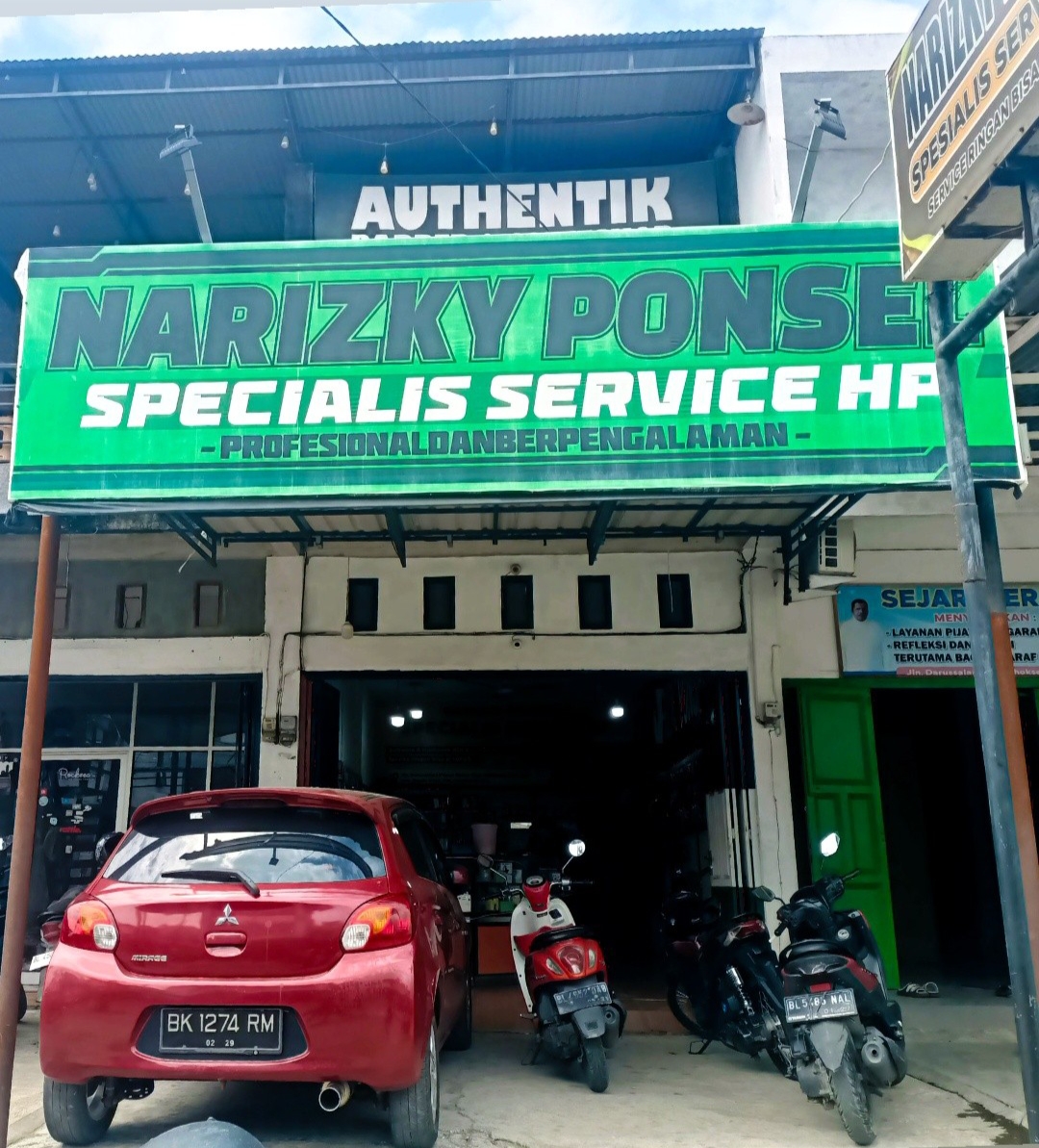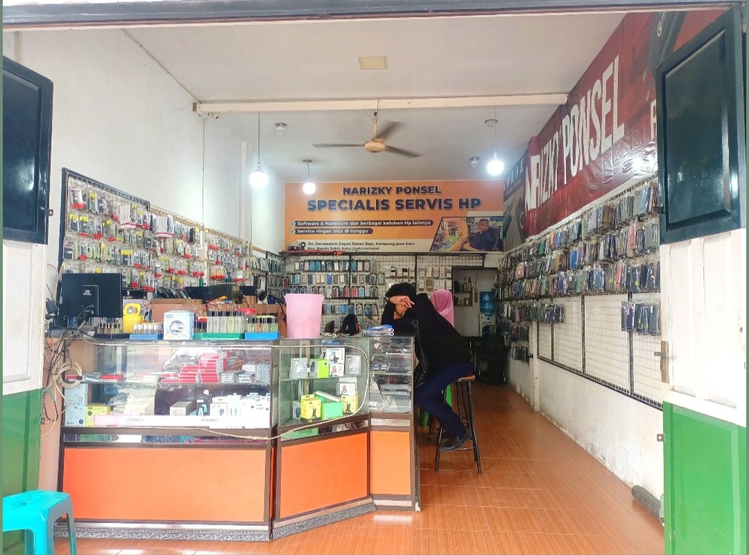 Toko spesialis service Hp Narizky Ponsel telah mengalami peningkatan yang sangat pesat. Dari awal mula hanya usaha kecil-kecilan sampai hingga sekarang memiliki sebuah toko. Toko Narizky Ponsel ini selain lokasinya yang strategis, pemilik yang baik juga memiliki karyawan yang sangat ramah dan juga sopan. Narizky ponsel terdiri yang sebuah bangunan dua lantai. Di lantai kedua di jadikan barber dan coffe shop sedangkan di lantai satu tempat service HP Narizky Ponsel. Akan tetapi walaupun berada pada bangunan yang sama pemilik usaha di lantai pertama dan lantai kedua adalah orang yang berbeda.
