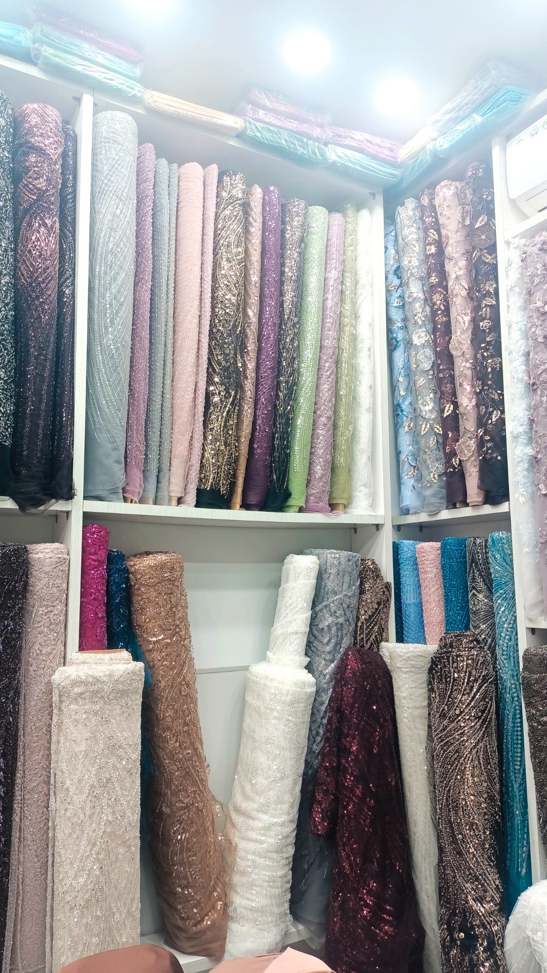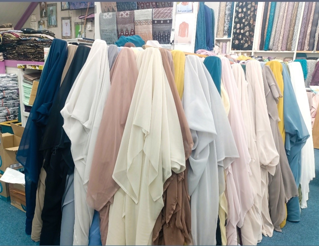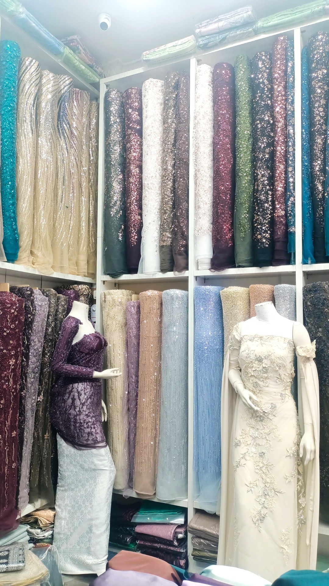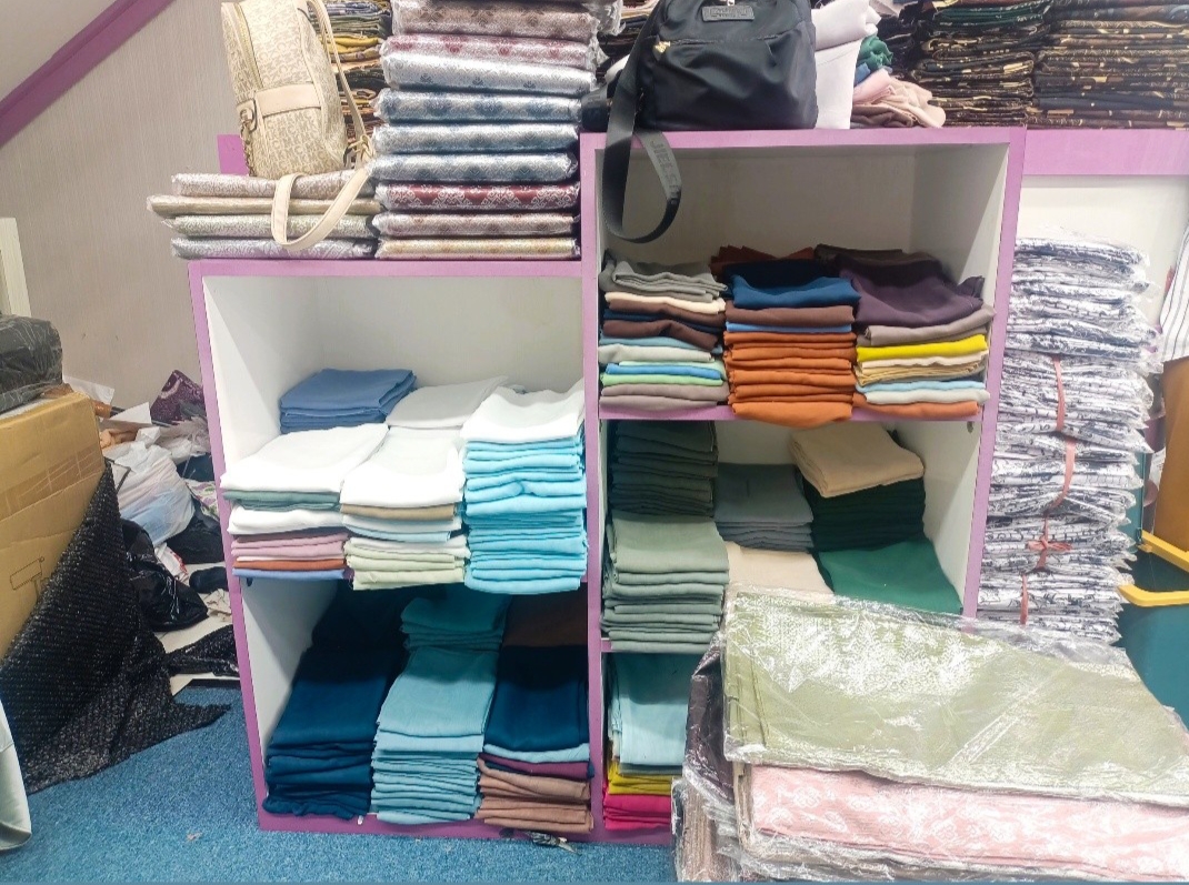 Di bagian depan atau di bagian teras dari toko ini sedang ada kain atau bahan yang sedang di obral dengan harga yang sangat murah. Bakal kain yang di obral bukan bakal kain yang sudah jelek, tetapi bakal cuci gudang bahannya masih sangat bagus warnanya juga masih lengkap. Jika bagi kita yang sedang berhemat atau lagi kekurangan dana bisa membeli bakal di toko ini.