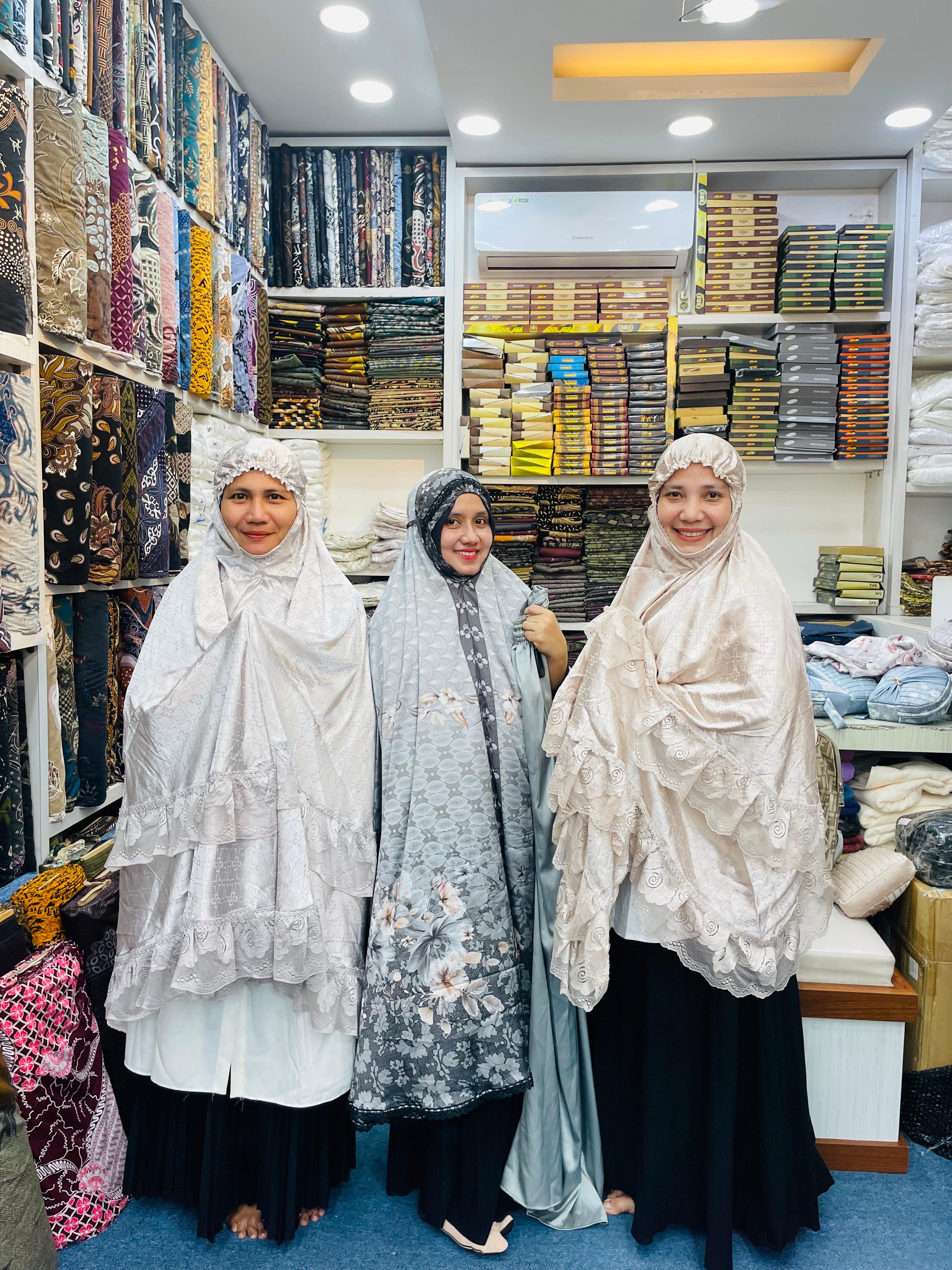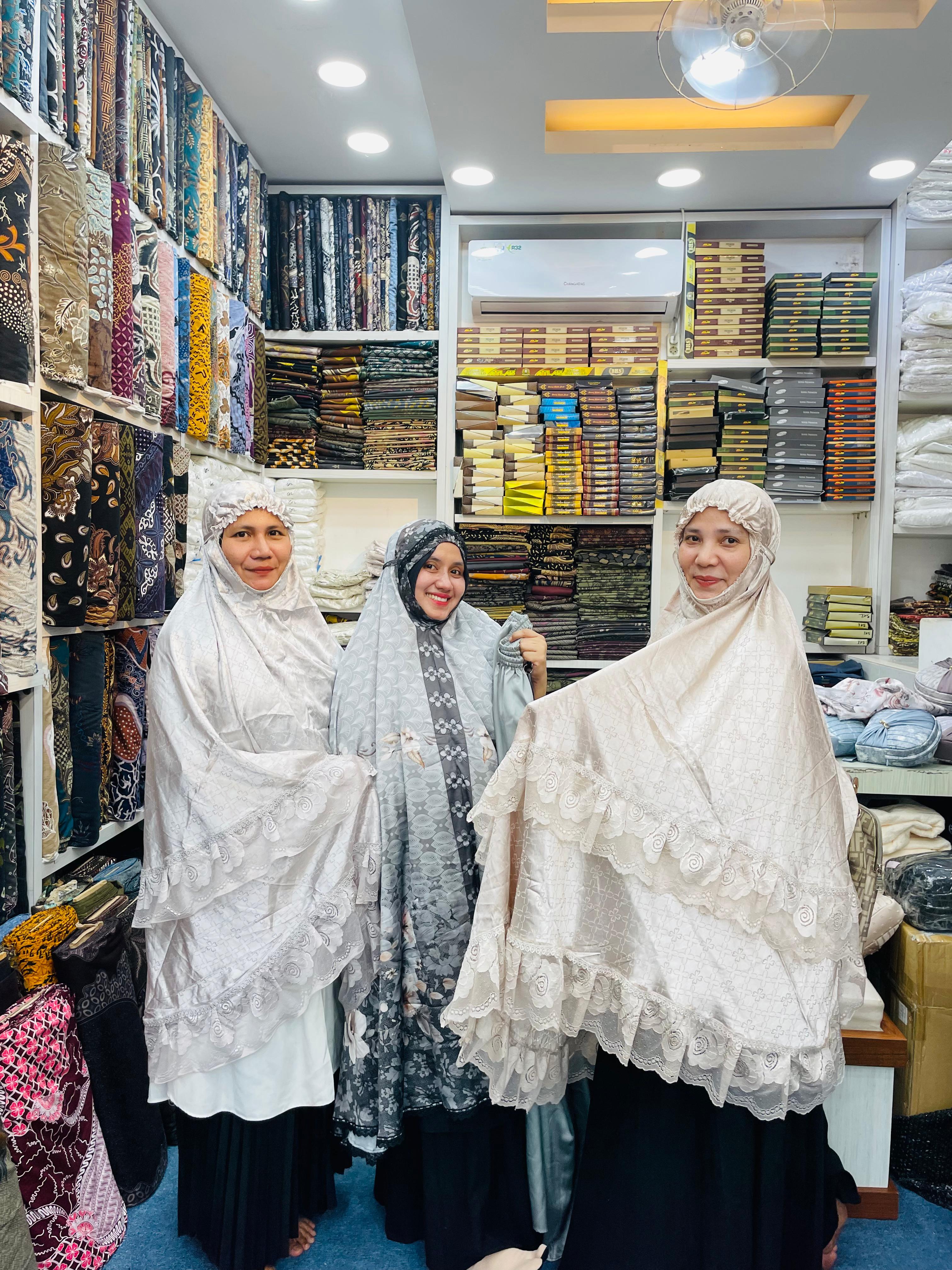 Saya dengan kedua teman saya kak @sriiza dan Kak Sukma ingin membeli mukena untuk menyambut bulan suci Ramadhan. Dan sangat kebetulan pada saat kami memakai mukena pemilik toko pun meminta izin kepada kami untuk di ambil foto, terutama saya sangat senang karena saya memerlukan foto untuk postingan di steemit.