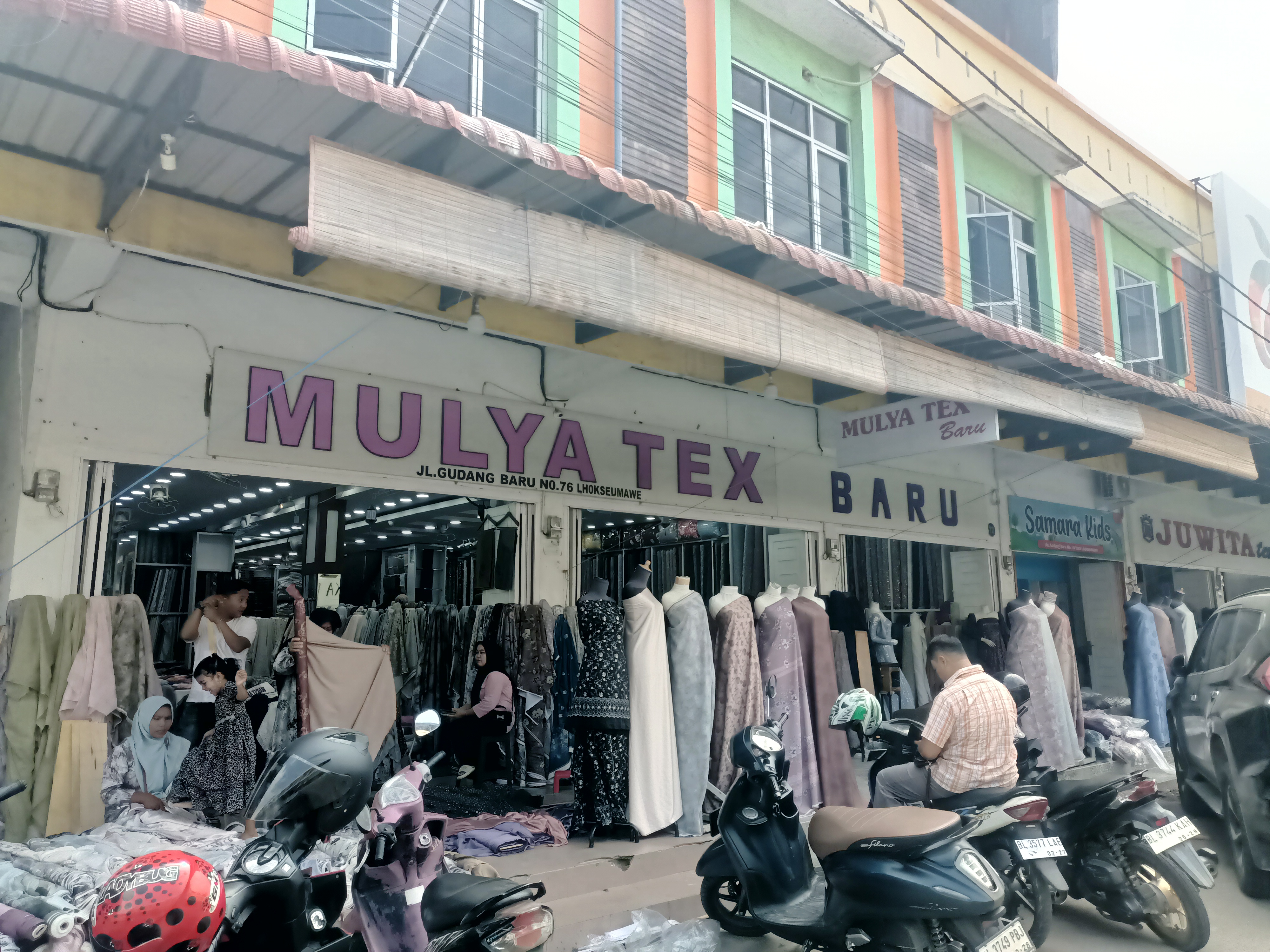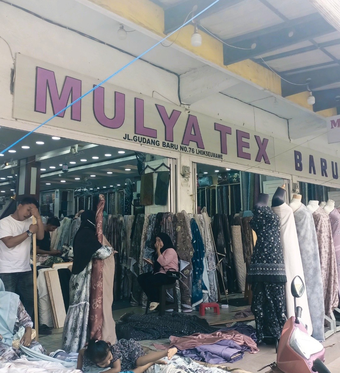 Toko kain mulya tex Baru merupakan salah satu toko kain yang terlaris atau ramai pengunjung yang ada di kota Lhokseumawe. Toko kain ini berada di pusat pembelanjaan kota Lhokseumawe yang beralamat di Jalan Gudang Baru No.76 Lhokseumawe. Sangat mudah untuk menemukan alamat toko ini, setelah memasuki jalan gudang baru sekitar 200 meter , toko ini berada di sebelah kiri dengan bertuliskan nama toko dengan huruf yang cukup besar berwarna ungu "Mulya Tex Baru".
