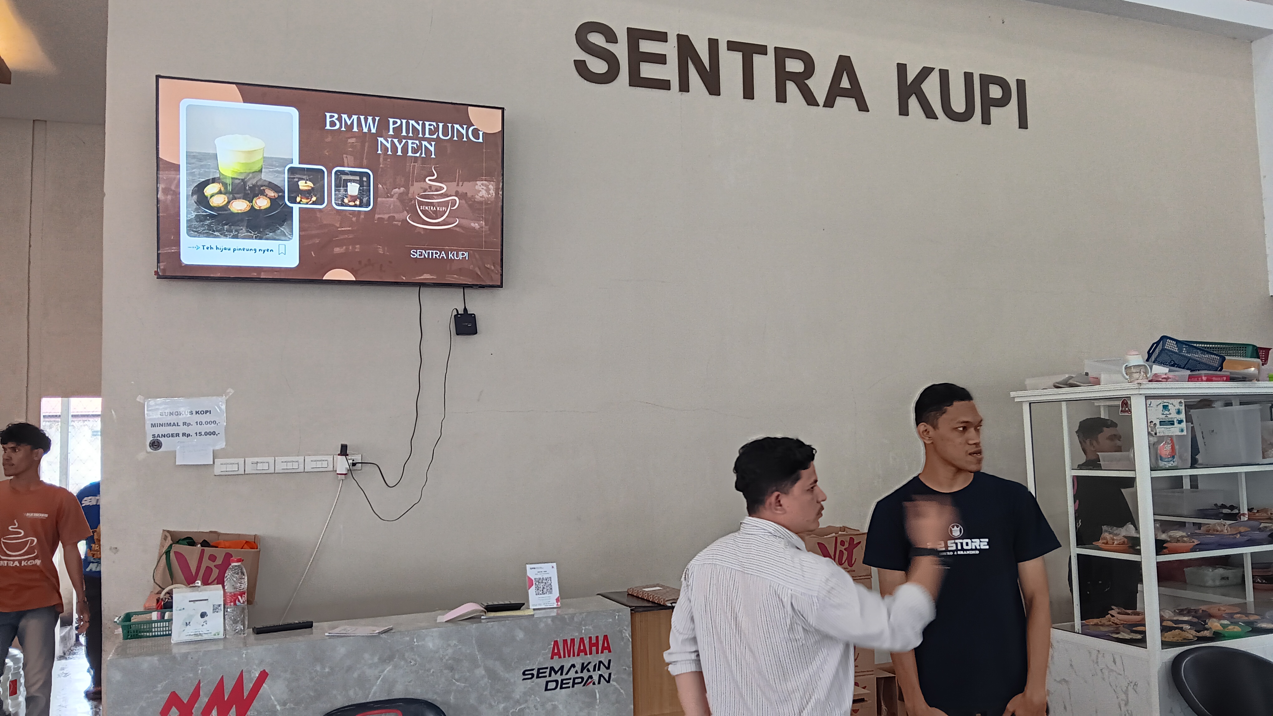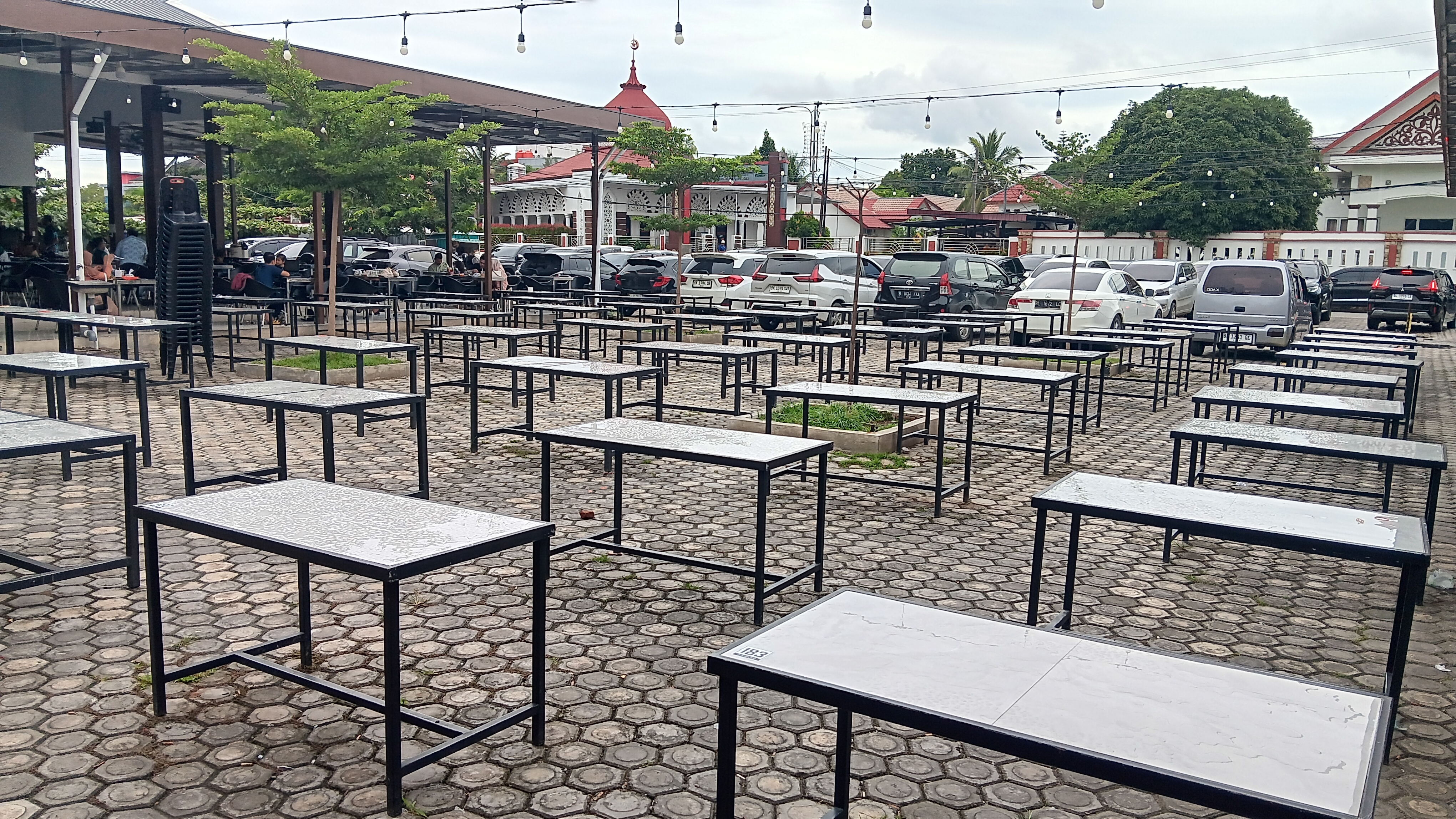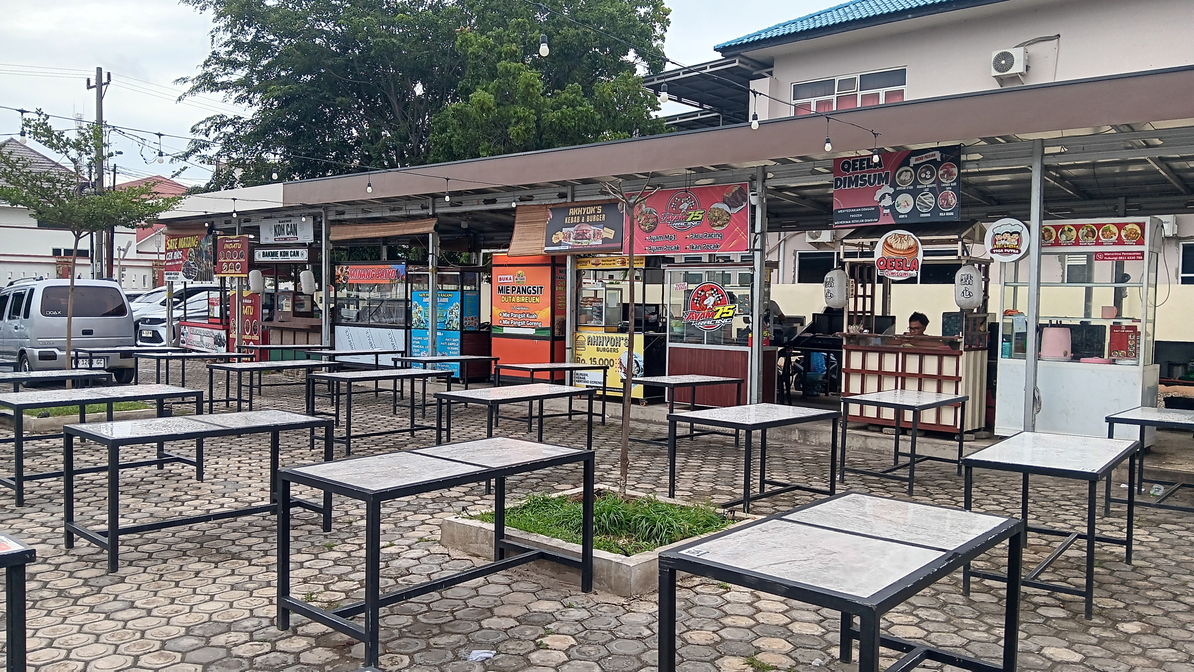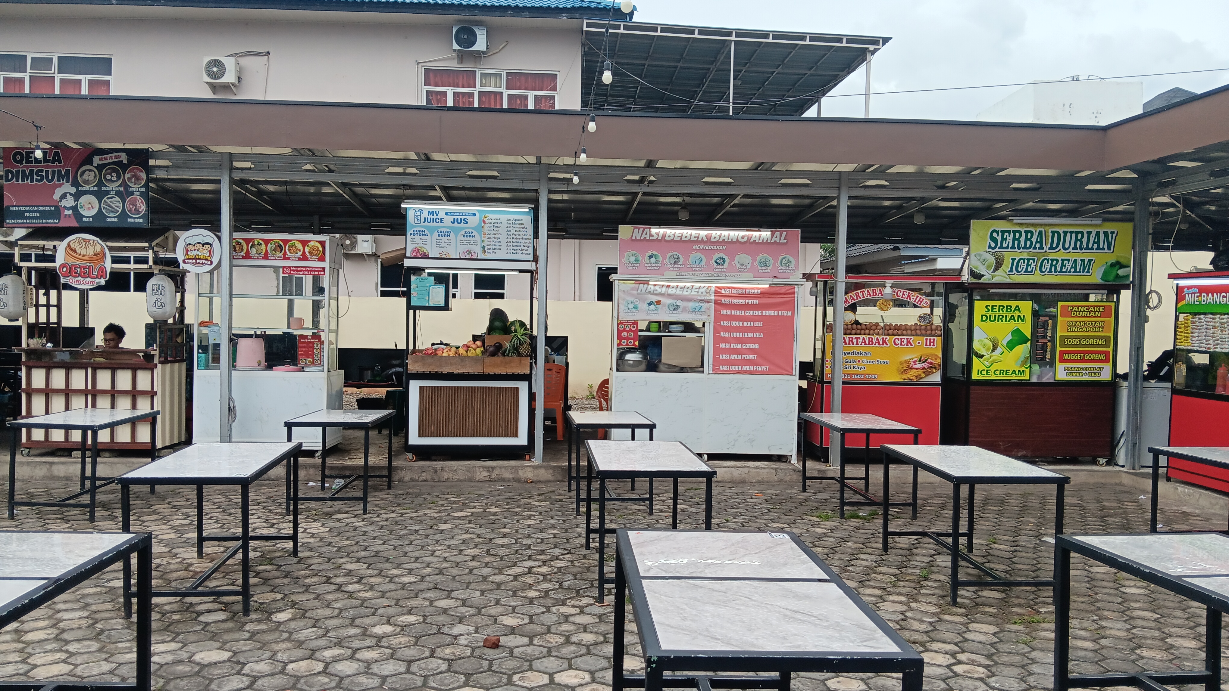 Suasana berbeda tampak di area dalam. Beberapa pelanggan masih duduk menikmati hidangan, meskipun jumlahnya jauh lebih sedikit dibanding hari-hari sebelumnya. Kontras antara area luar yang kosong dan bagian dalam yang masih beraktivitas mencerminkan dampak situasi terkini terhadap sektor kuliner.