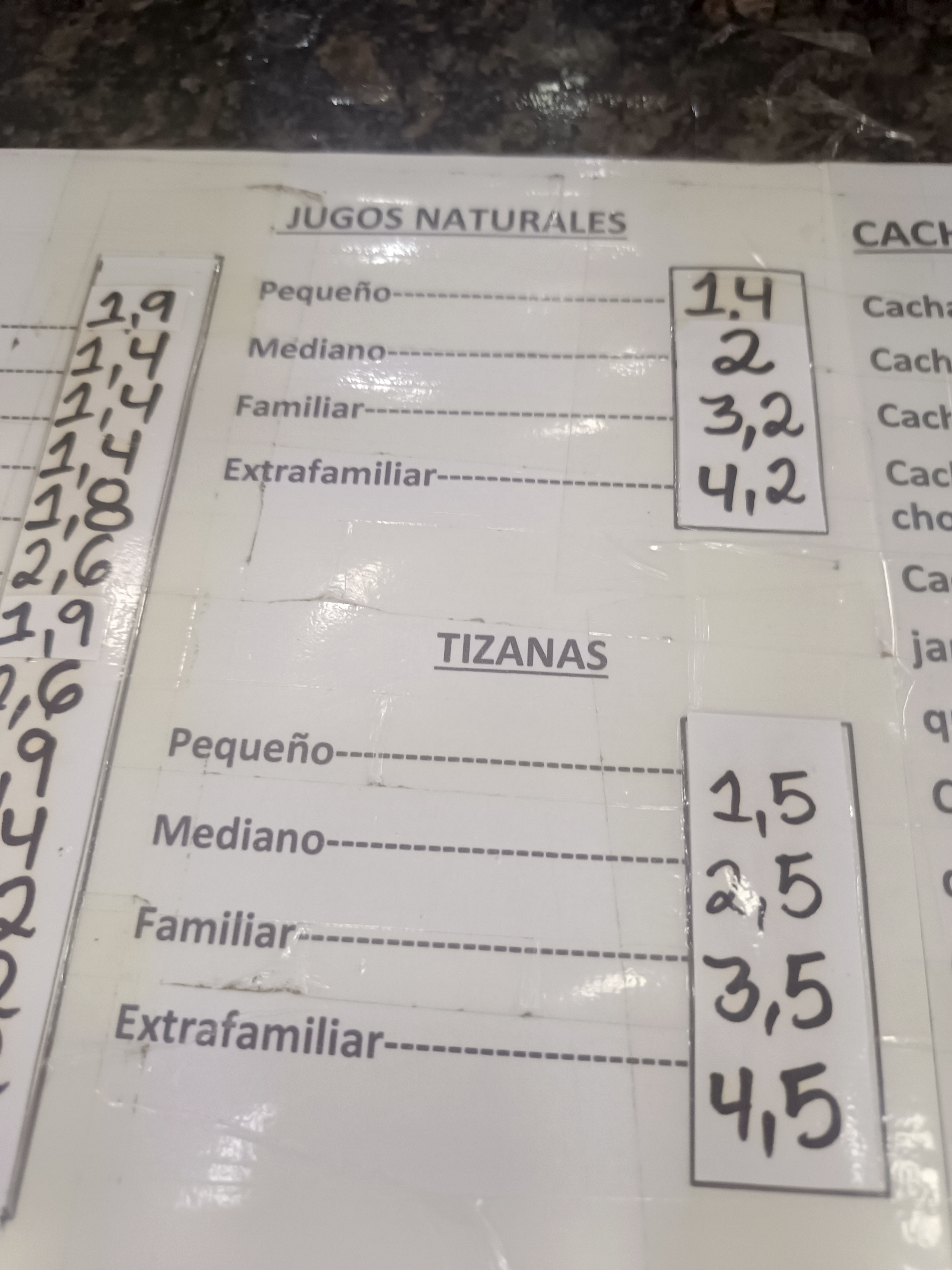 No cuenta con un menú físico, pero tienen la lista de todo lo disponible y sus precios en el área de caja que es donde haces tu pedido según lo que deseas consumir, haces tu pedido, cancelas y puedes sentarte a disfrutar de sus instalaciones.