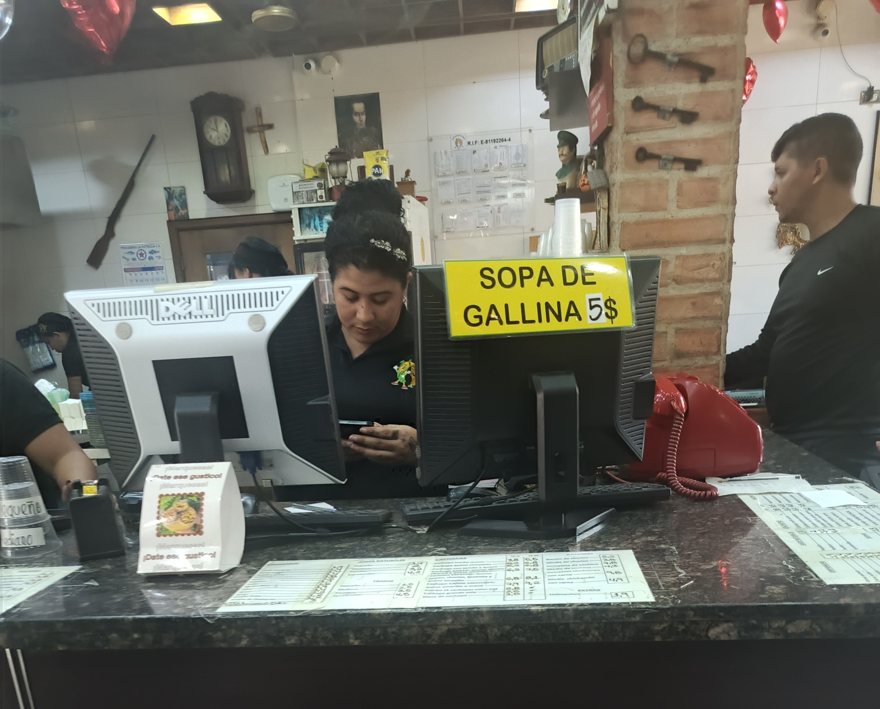 Empanadisima es muy concurrido, siempre hay cola para comprar porque su comida es muy buena, además porque ellos tienen como estacionamiento un museo, si es estacionamiento y museo de Antiguedades es por ello que en su decoración también tienen Antiguedades, ya después les mostraré eso espacios 😉