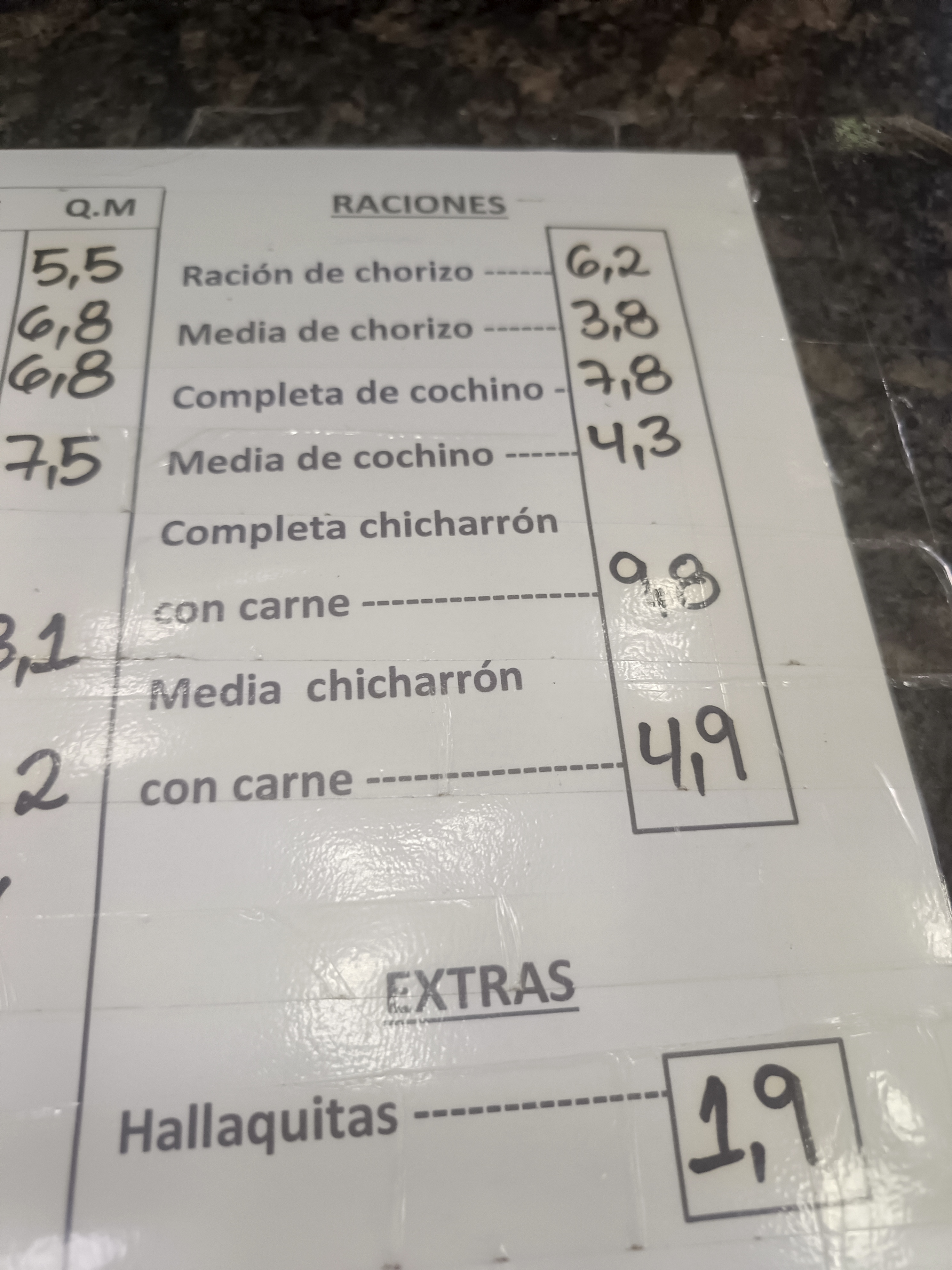 Variedad de raciones y precios