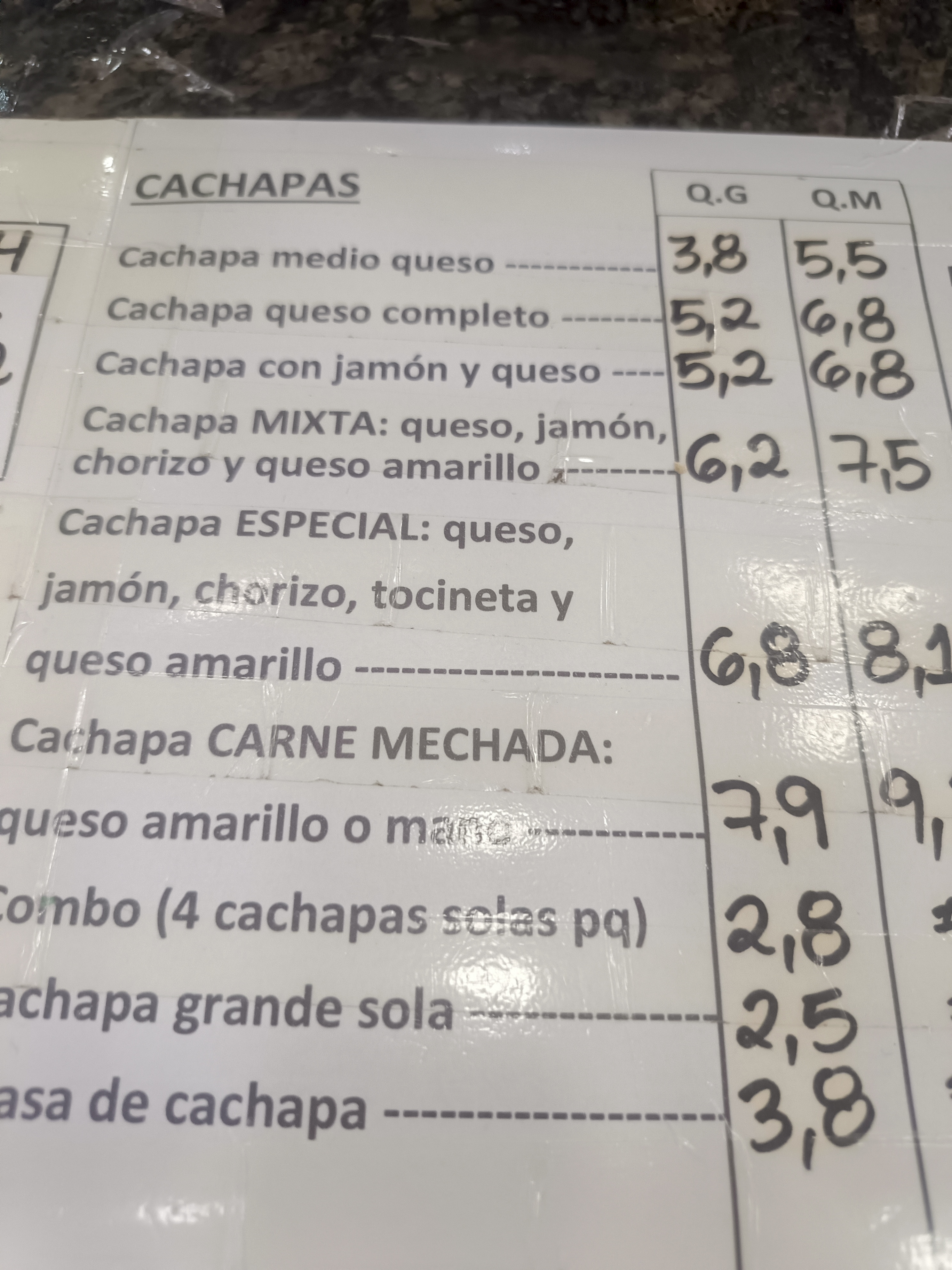 Tipos de cachapas y sus precios