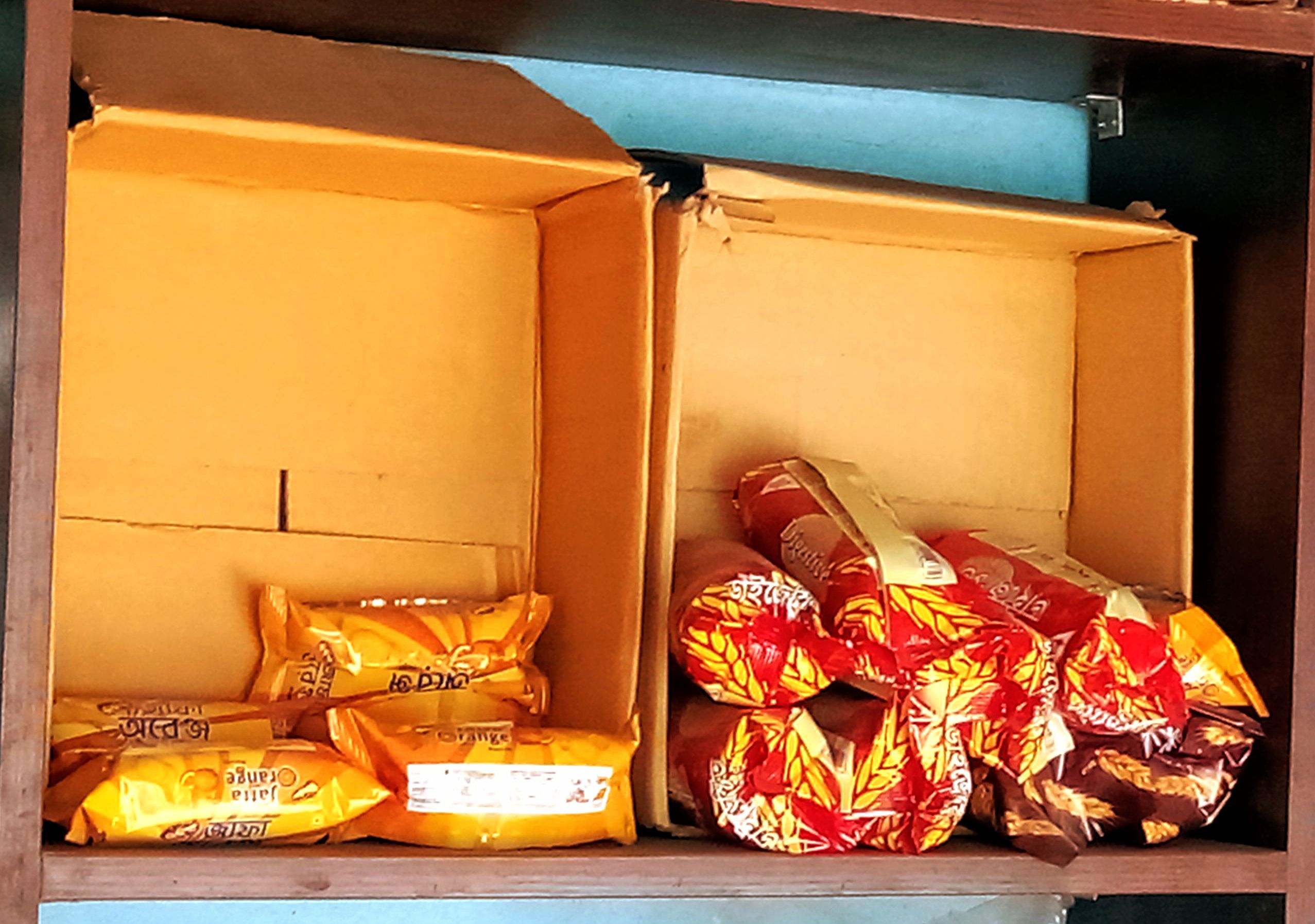 Inside this shop, different types of chocolates were kept in boxes. Chocolates are liked by both young and old people. In his shop, there were chocolates like Dairy milk Chocolate, xcel, choco choco, mango bar, choco milk etc. These chocolates are priced from 2 tk to 20 tk. Small children can buy and eat these chocolates. Because the price of chocolates is very low there. And all the packaged chocolates are in that shop. These foods are of good quality. Most of the products in his shop are from Pran company. It is one of the reputed companies in Bangladesh.