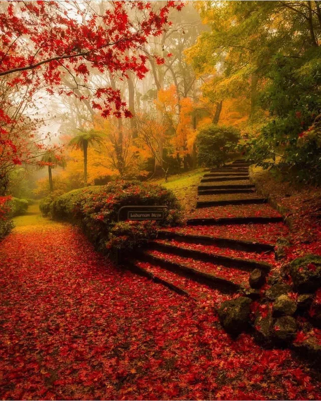 Those colors are wonderful. Did you take the picture youself? IT must have been great to see in real life. The mist in the background really adds to the picture. I think it gives the background a softness that make the colors in the foreground even better.