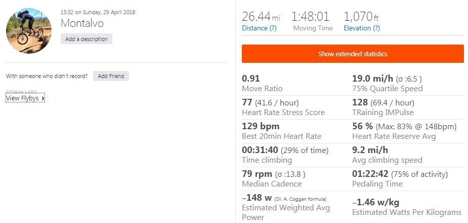 My ride was 26 miles and 1k of climbing. It was a cool 62*f, overall nice day for a Sunday ride.