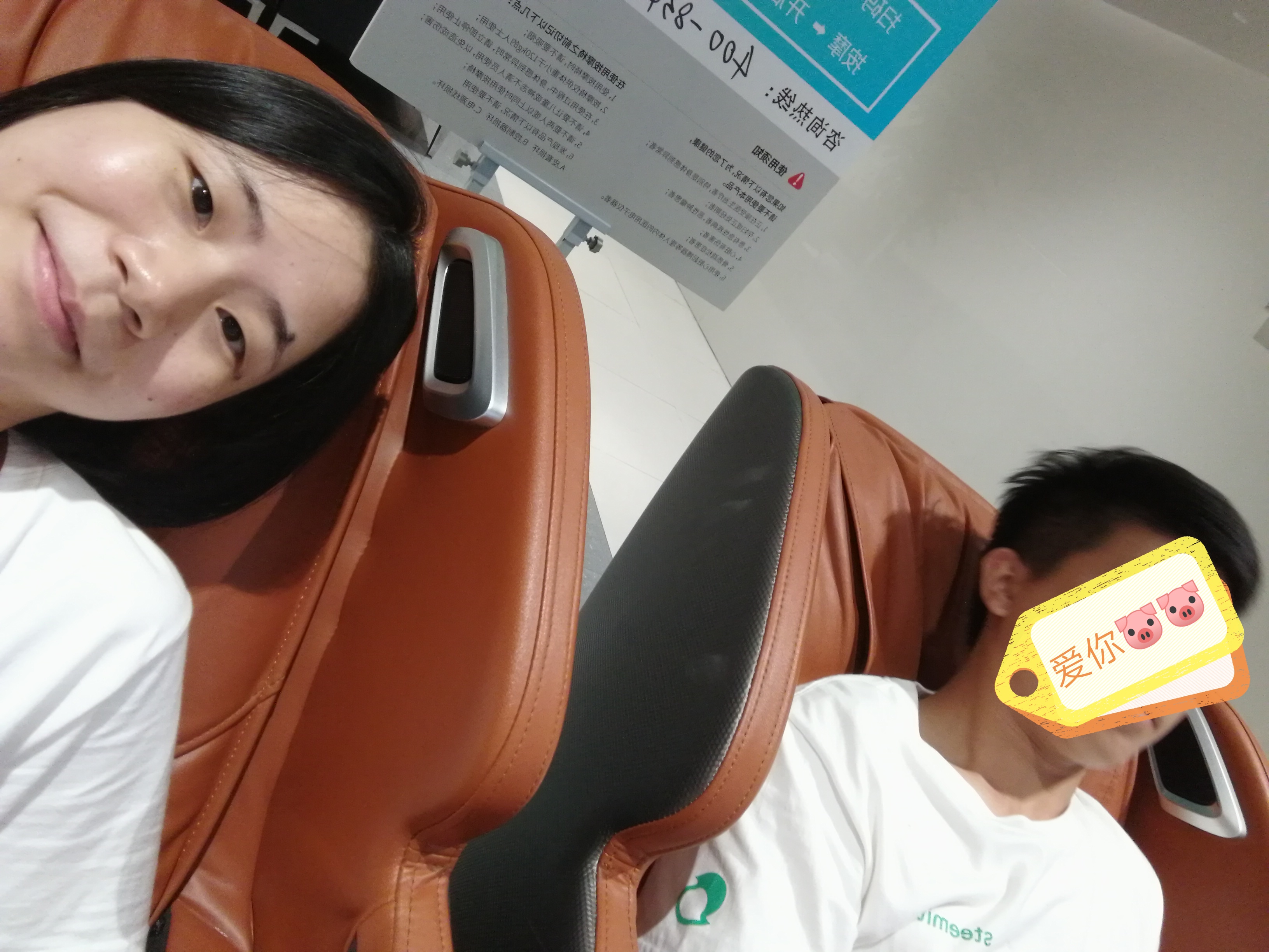 在等电影开场的时候,我们去超市坐了按摩椅,微信扫一扫支付就可以随地按摩十分钟,但是我不喜欢,因为我平时也不去按摩,所以这次按摩椅把我按摩得好痛苦啊,又痛又折磨,反正按摩的时候我特别不自然,下次再也不坐了,还是让他给我按摩好一些(✪▽✪)