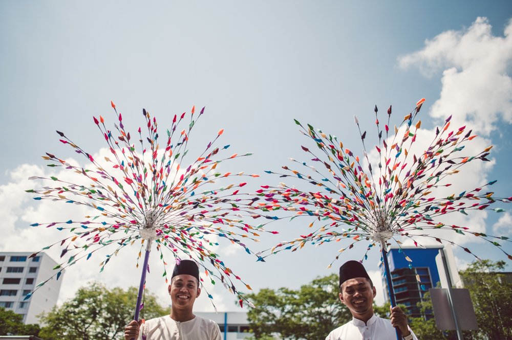While making his entrance, the groom is ‘guarded’ by bunga manggar – palm-shaped decorations made from colourful tinsel on bamboo poles. They symbolises prosperity and fertility, and if placed outside of the ceremony location, it can also double up as a directional marker.