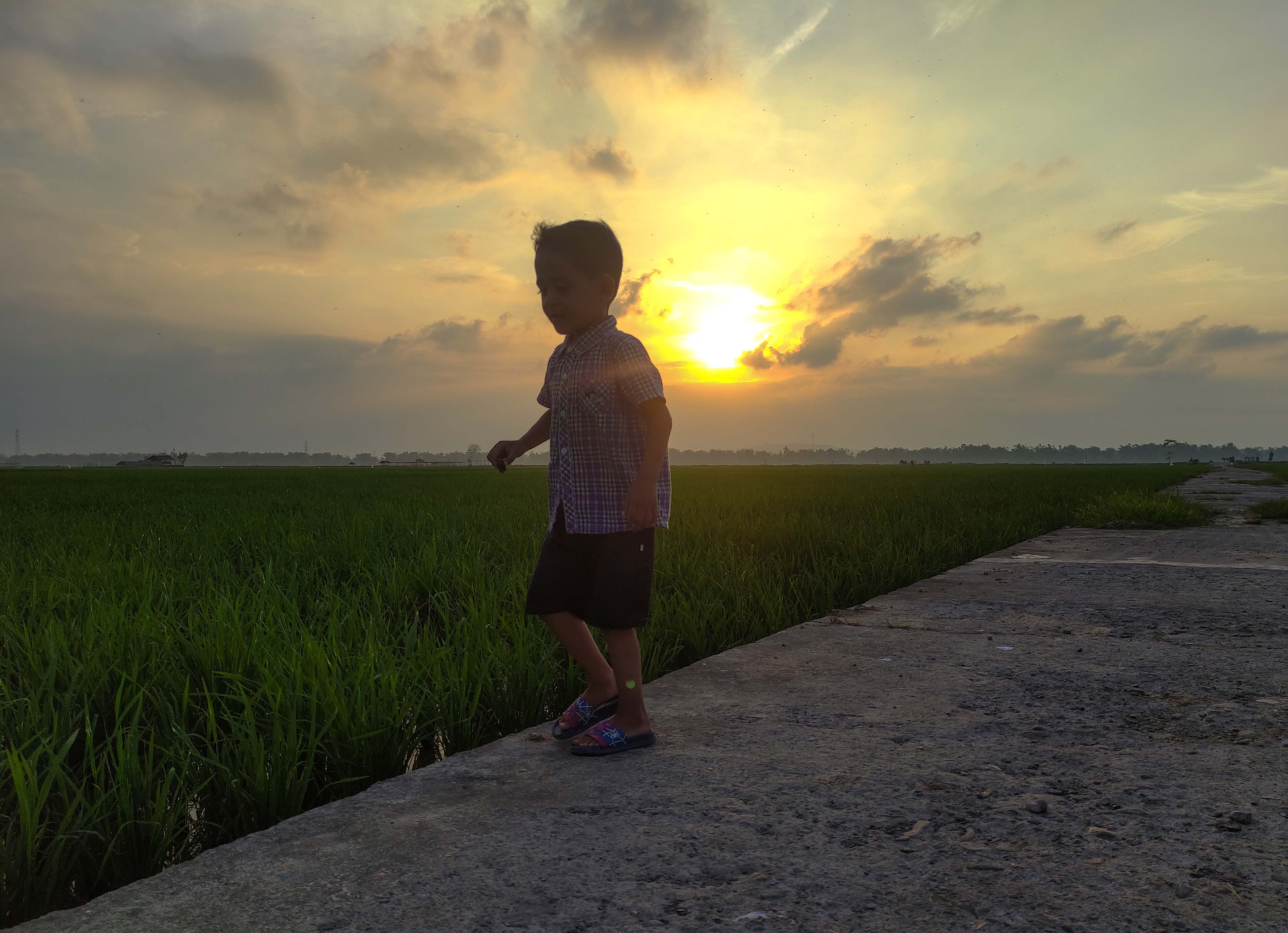 When I was passing the village road, I was thrilled to see this rice field landscape, and straightly dragged me to take some quick shots before the dark surrounded the place. These paddy fields started to grow that appear beautifully under the blue sky. Paddy fields are used to cultivate rice, considered as a primary food in Indonesia and some part of the world. They have been used from generation to generation to make a living. What makes me like about the landscapes, is that the green field and the blue sky instantly attracted me to spend a little time with the shots. How could I leave this? If you are truly a nature lover you will never leave this moment before taking shots. For some time, I ended up here, trying to capture these views from the village street. This beauty of nature always pleased the eyes and we felt blessed for having a chance to see such beauty of nature. It's been days, I don't see these views around and I won't miss these scenes without taking any pictures.