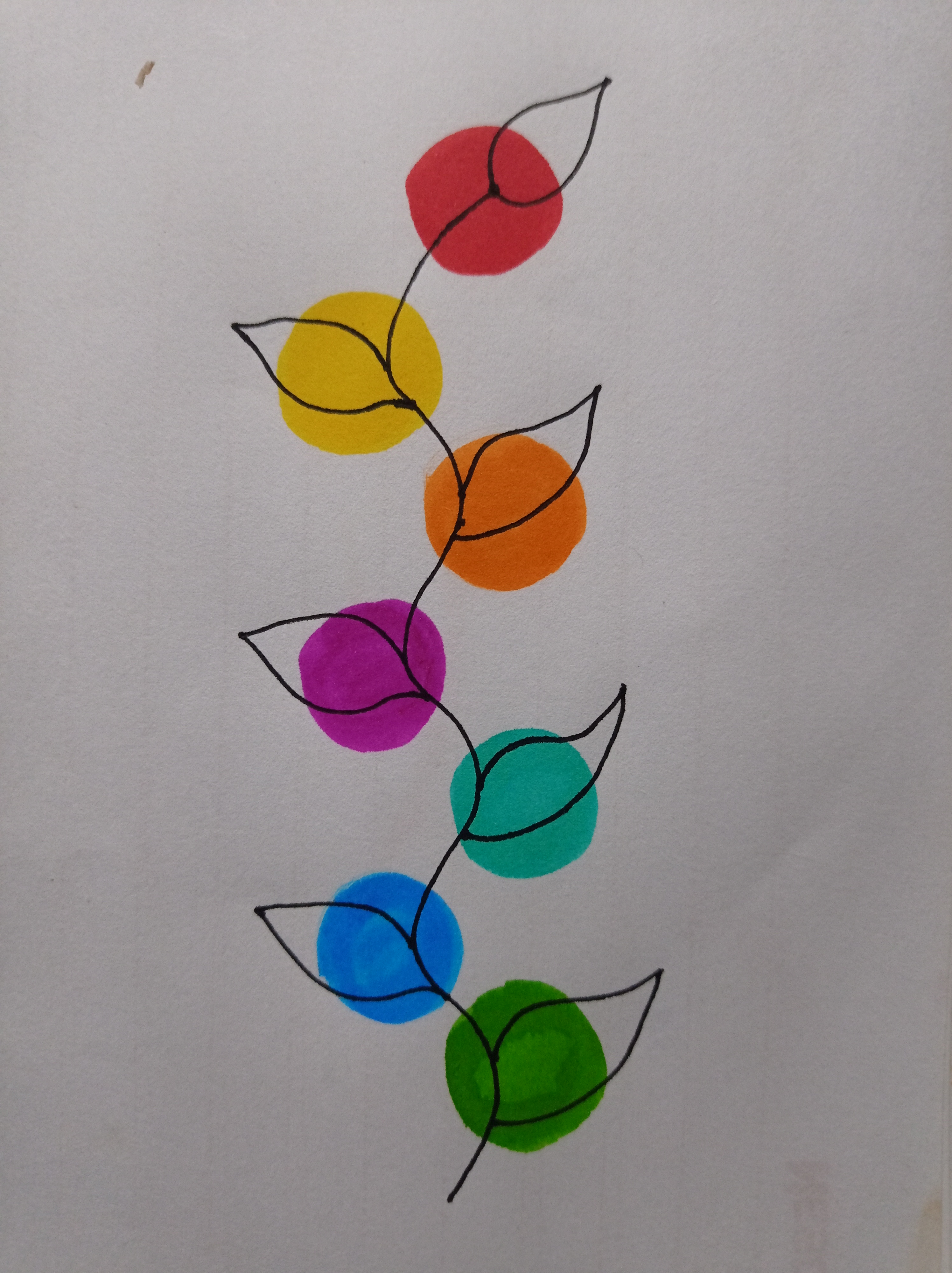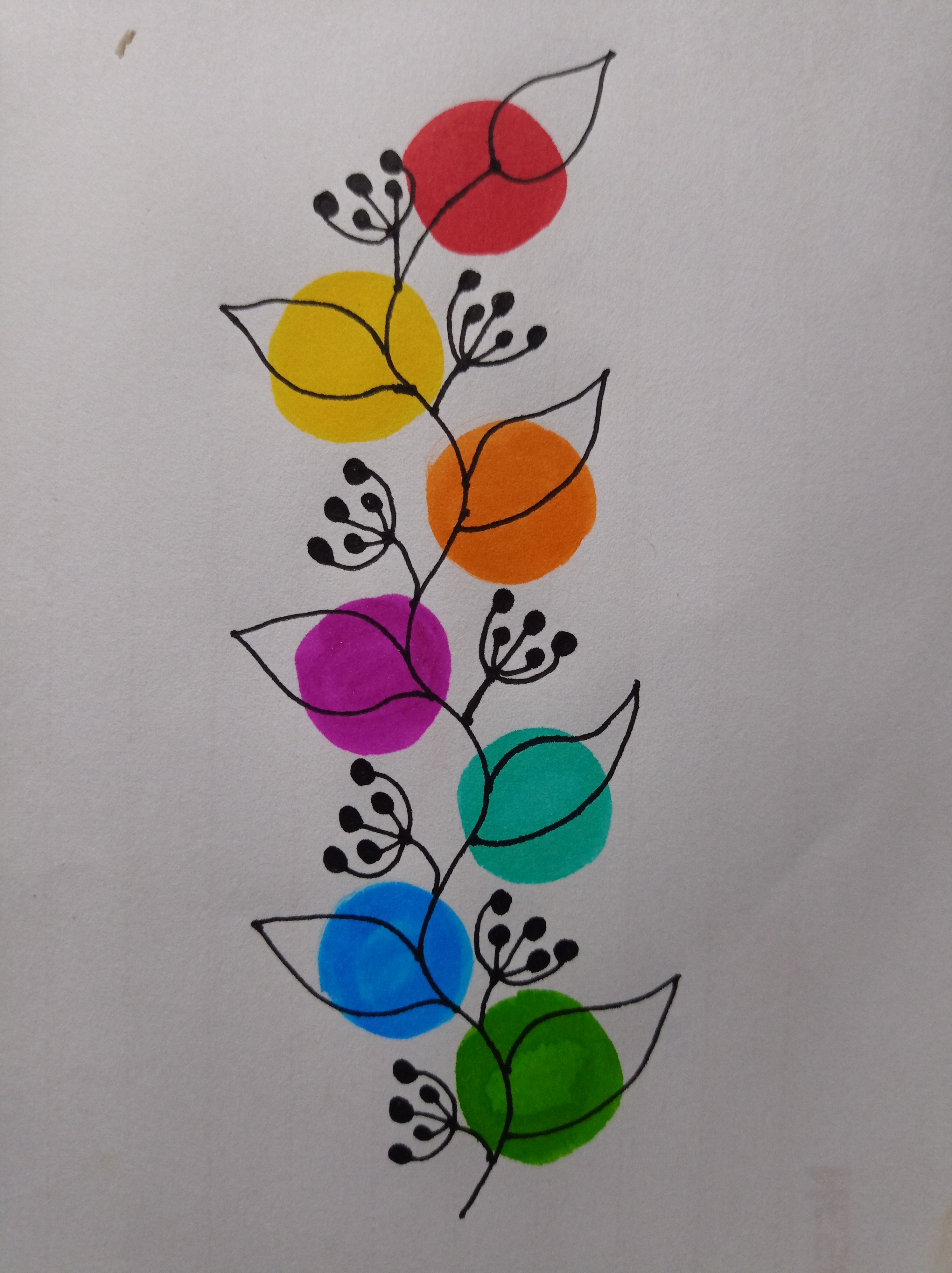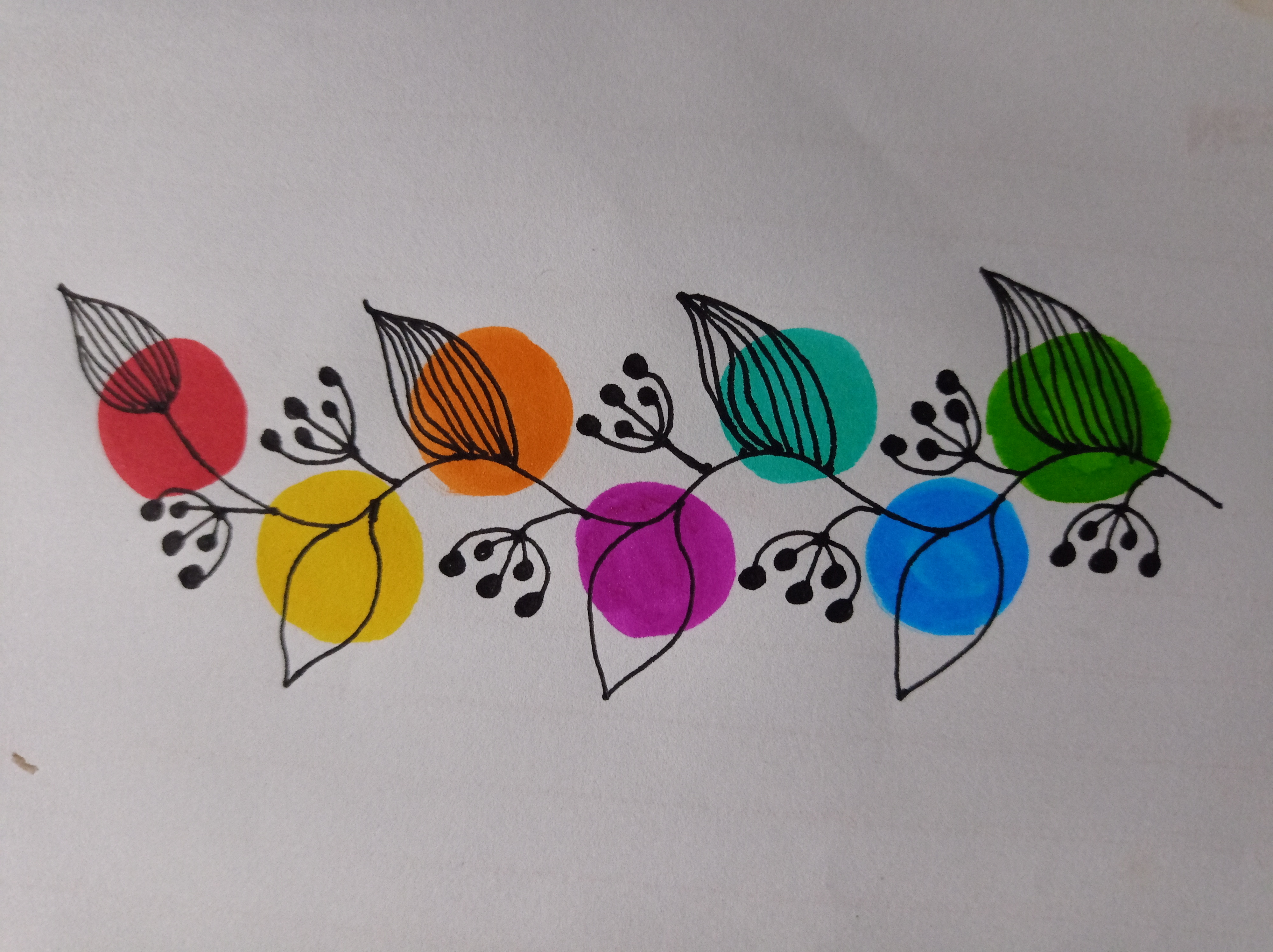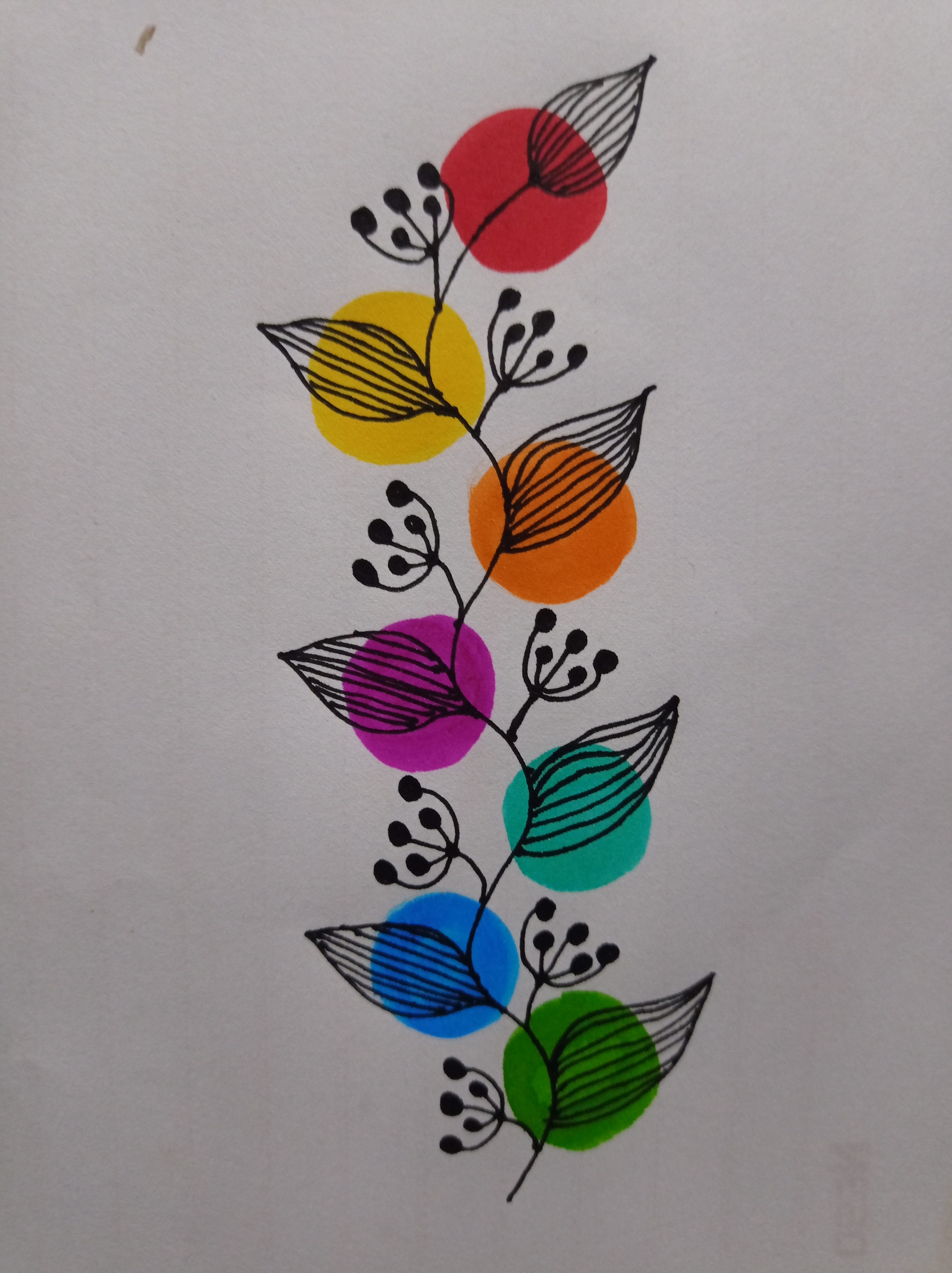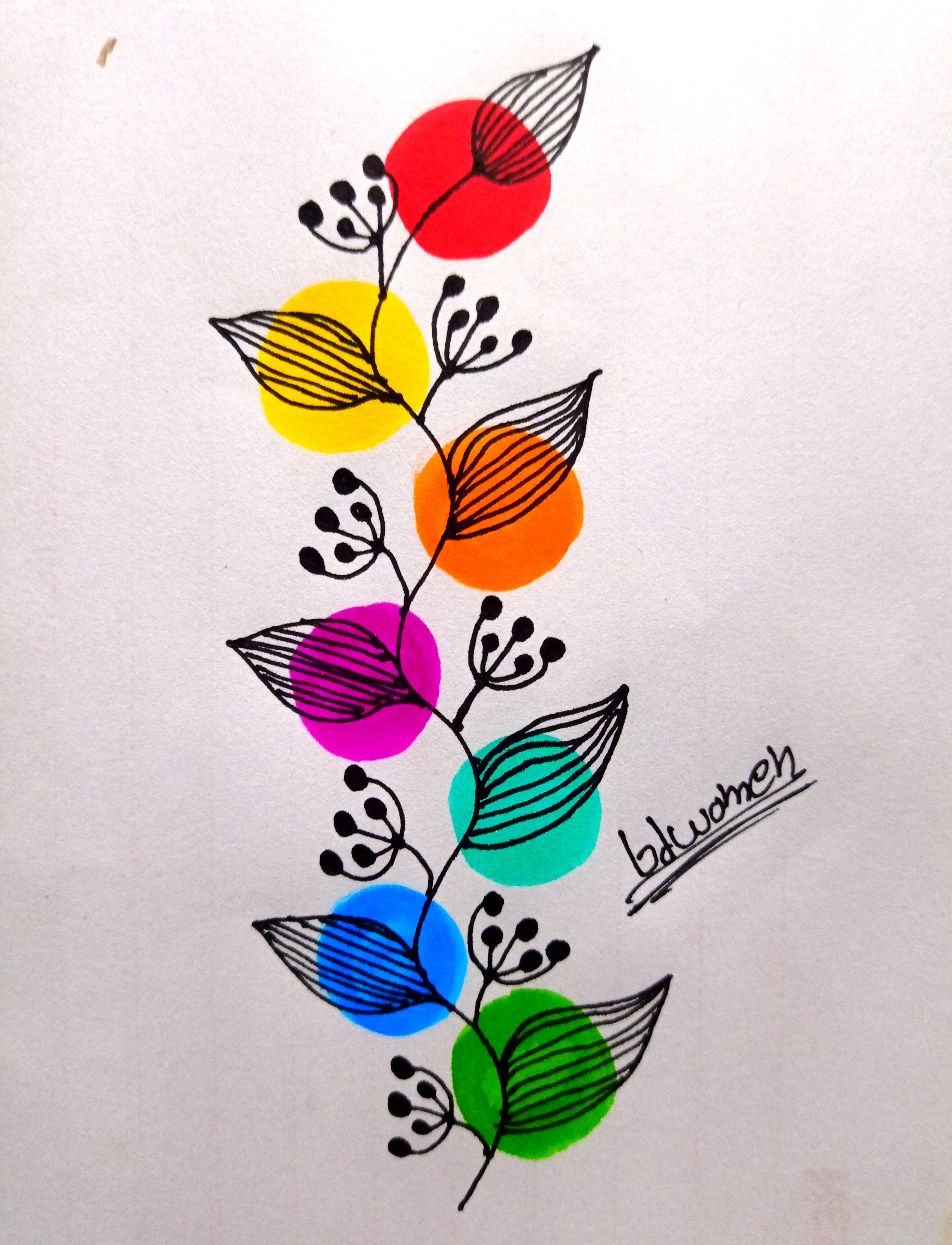 তারপর সে কালারফুল রং গুলোর উপরে চিকন মার্কার কলম দিয়ে সুন্দর করে পাতা এঁকে নিয়ে নিলাম।