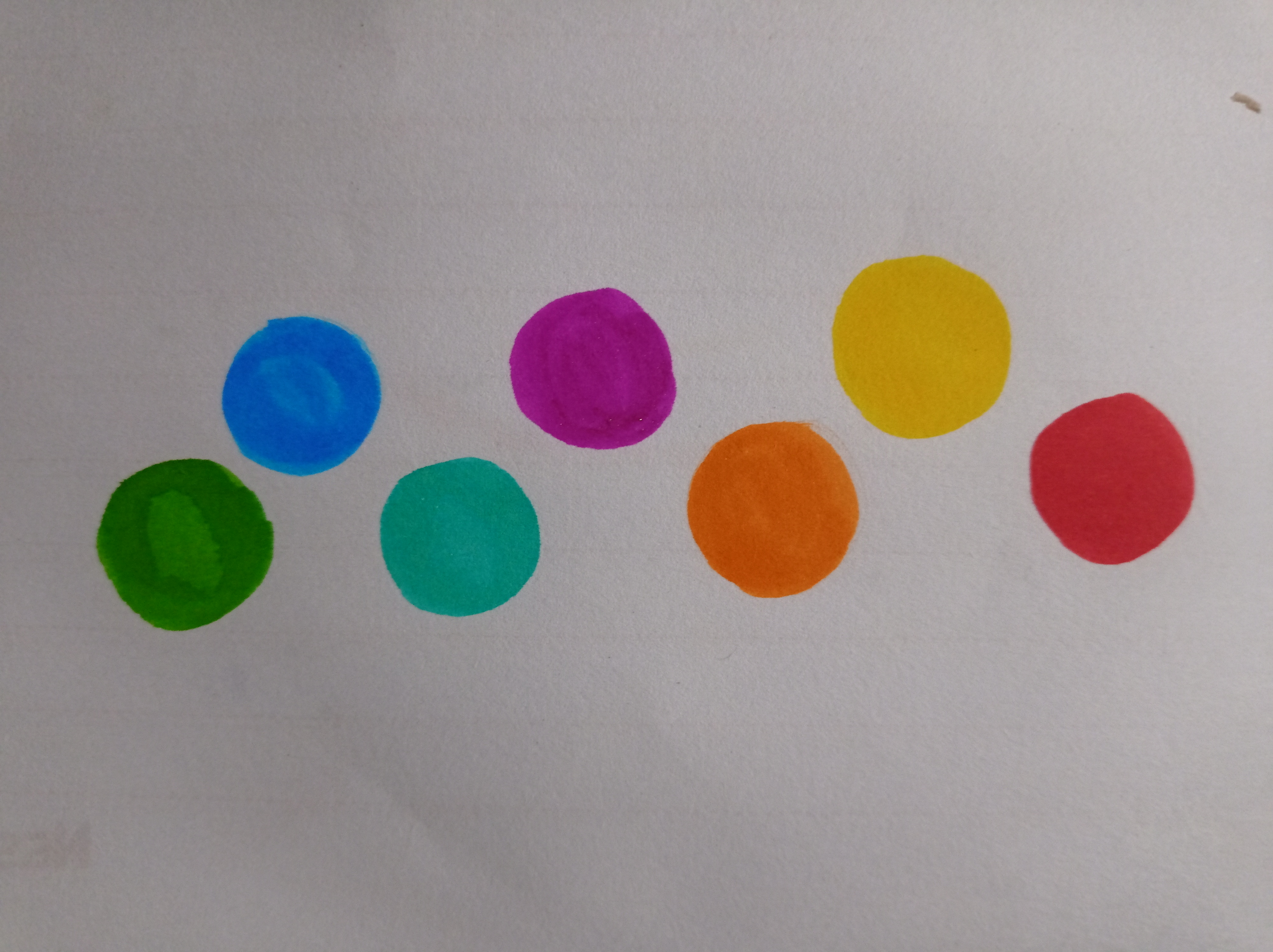 প্রথমে আমি একটি সাদা পেজ নিলাম। তারপর কয়েকটি কালারের রং কলম দিয়ে সুন্দর করে ছোট ছোট গোল বৃত্ত করে রং করে নিয়ে নিলাম।