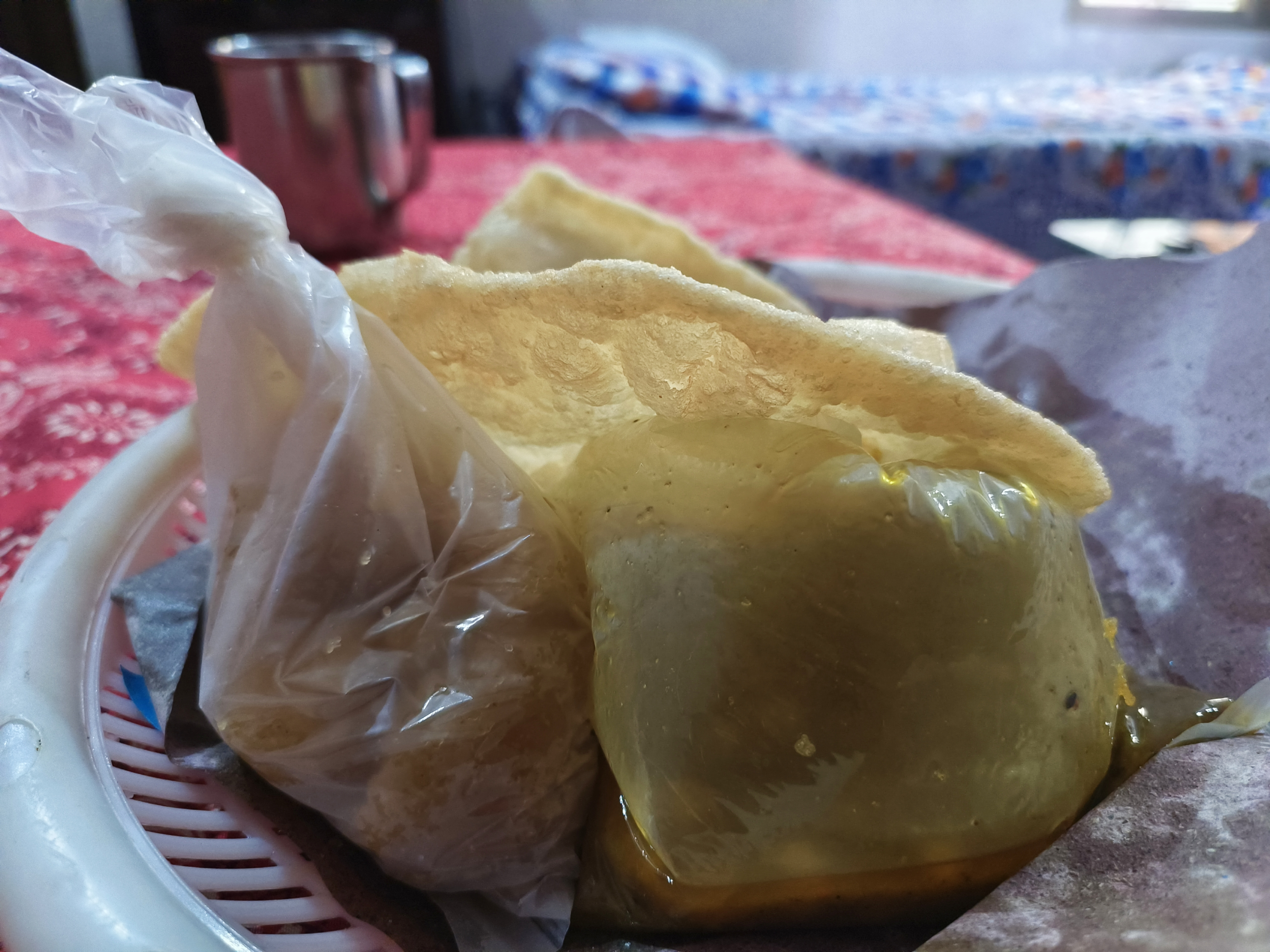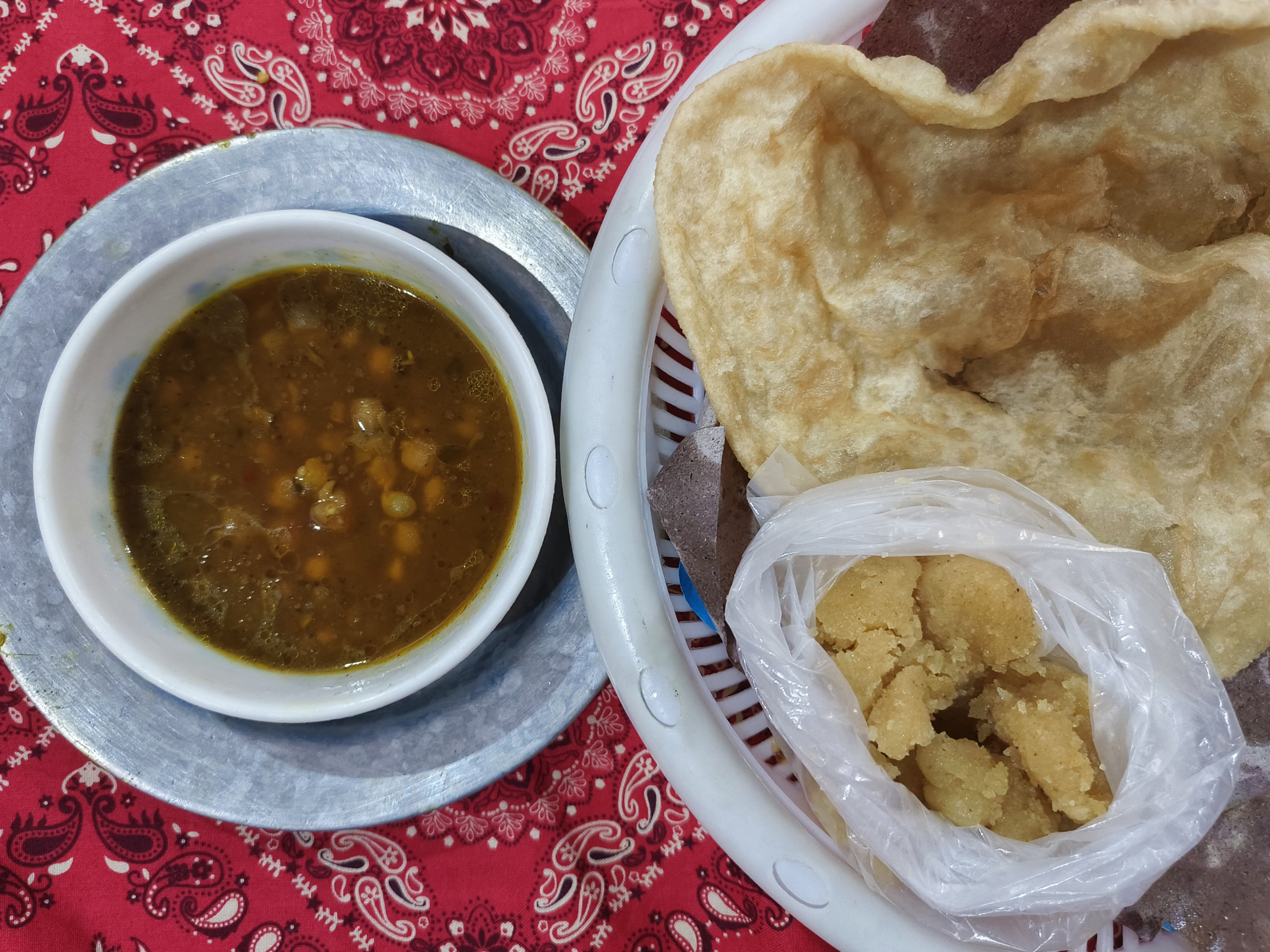 Dear members of Beauty of Creativity. I hope you all are well and doing good. A week ago in the morning, I decide to eat Halwa Pori for breakfast. I go to a shop and purchase 2 Halwa Port. They provide white chany with it. I come back home and set up my breakfast table. It was a delicious breakfast. I capture these pictures before breakfast using Vivo X80.