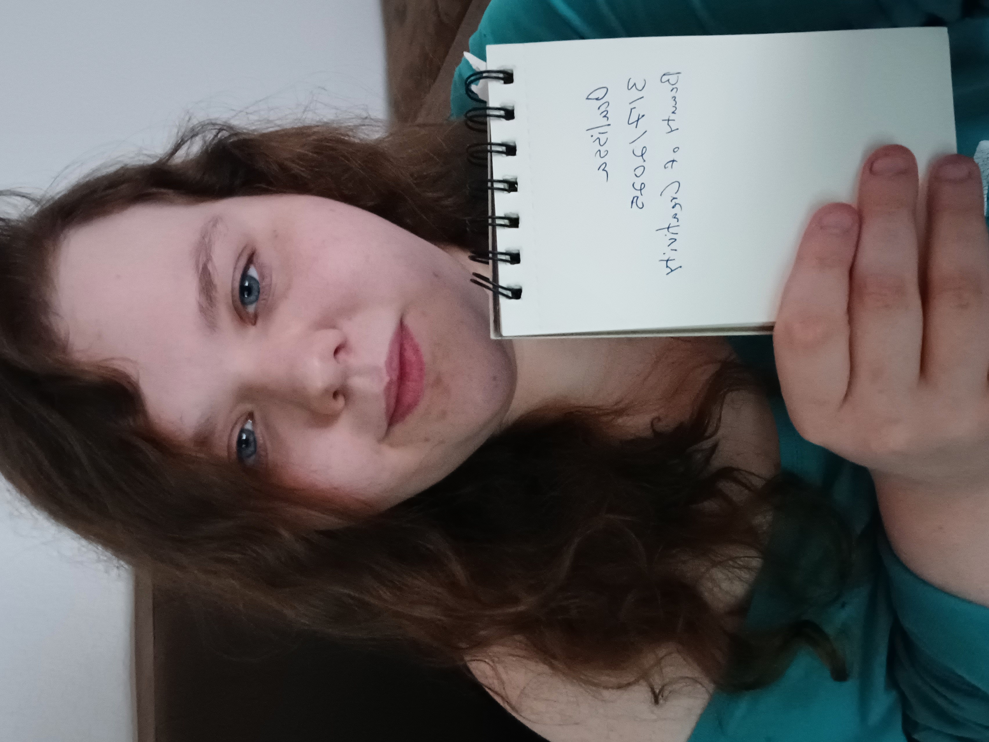 Take a selfie while holding a page written Beauty of Creativity with the date and your Steemit username