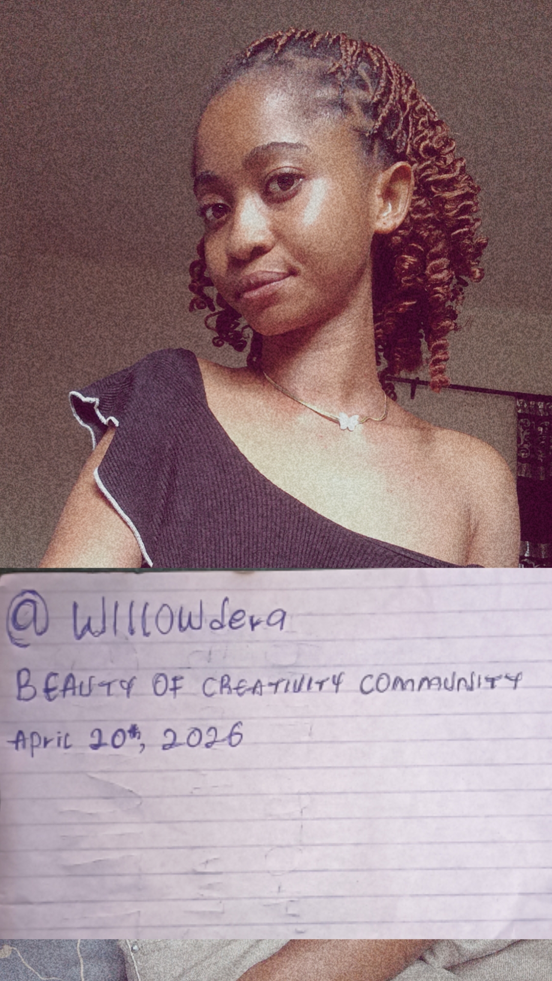 My name is @willowdera, I'm from Nigeria and I’m excited to be part of this amazing community (Beauty of creativity).