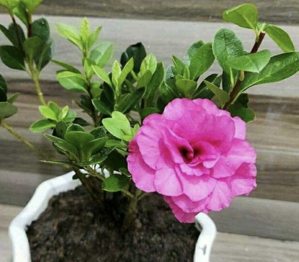 Pagi ini saya ingin mempersembahkan salah satu bunga Azalea cantik, yang kelihatan indah dan sangat menawan. Apalagi dengan bunganya yang berwarna pink yang nampak kontras dengan warna daunnya. Meskipun bunganya baru satu yang mekar tapi keliatan sangat menarik. Semoga anda suka.