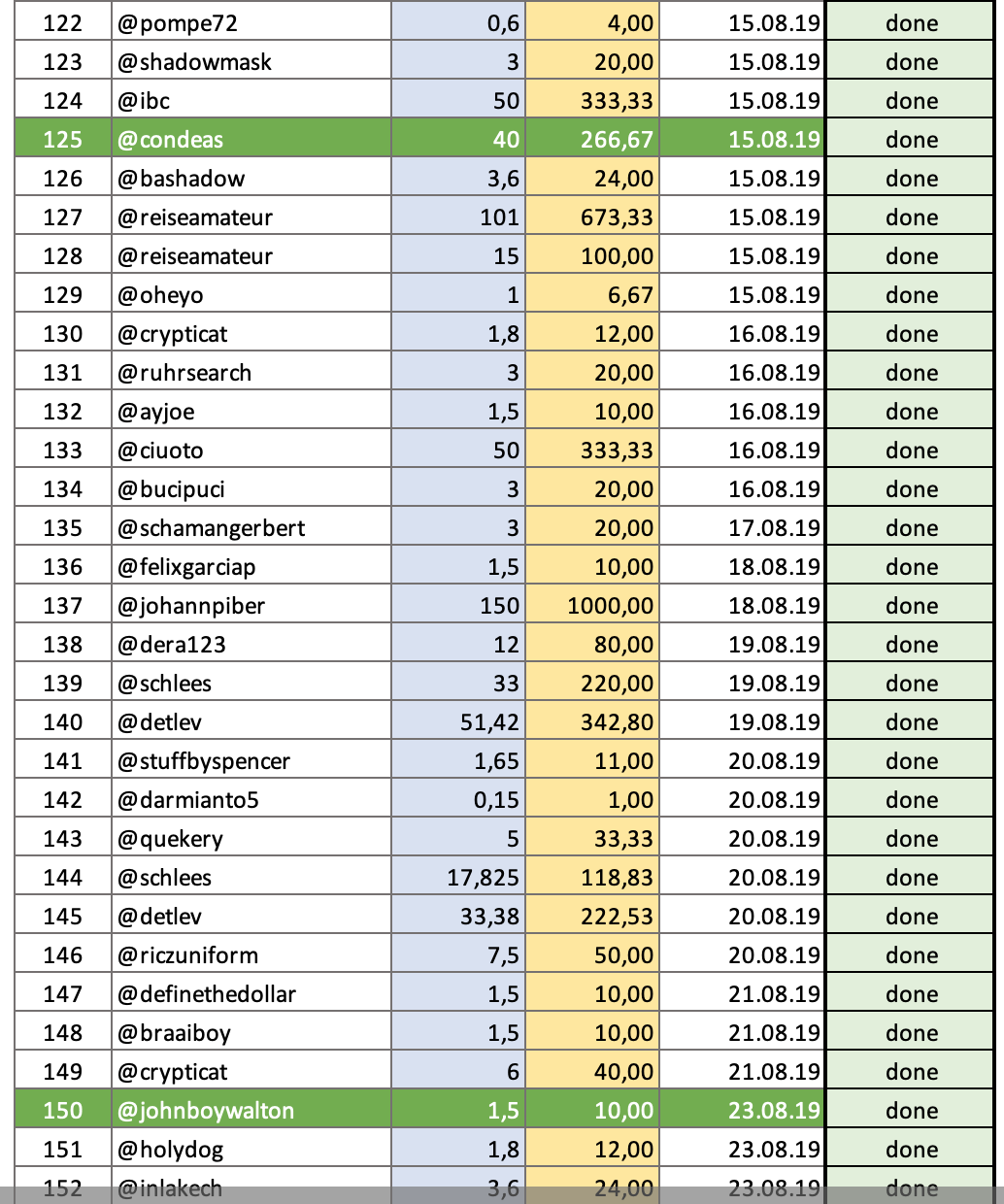 We already have a few Steemians who did a 100 STEEM or 50 STEEM deal. Even @reiseamateur @jaydih and @detlev spend 150 STEEM the last days.