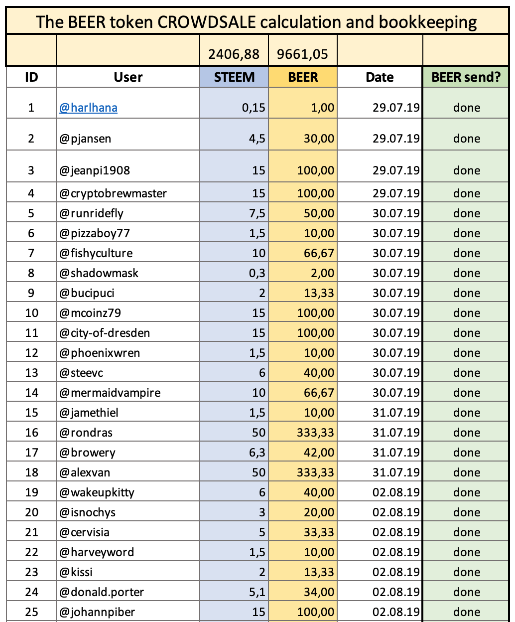 Here is the actual Status of the CROWDSALE of BEER and yes, we got the first 152 Steemians who support our fun project with around 2407 STEEM.