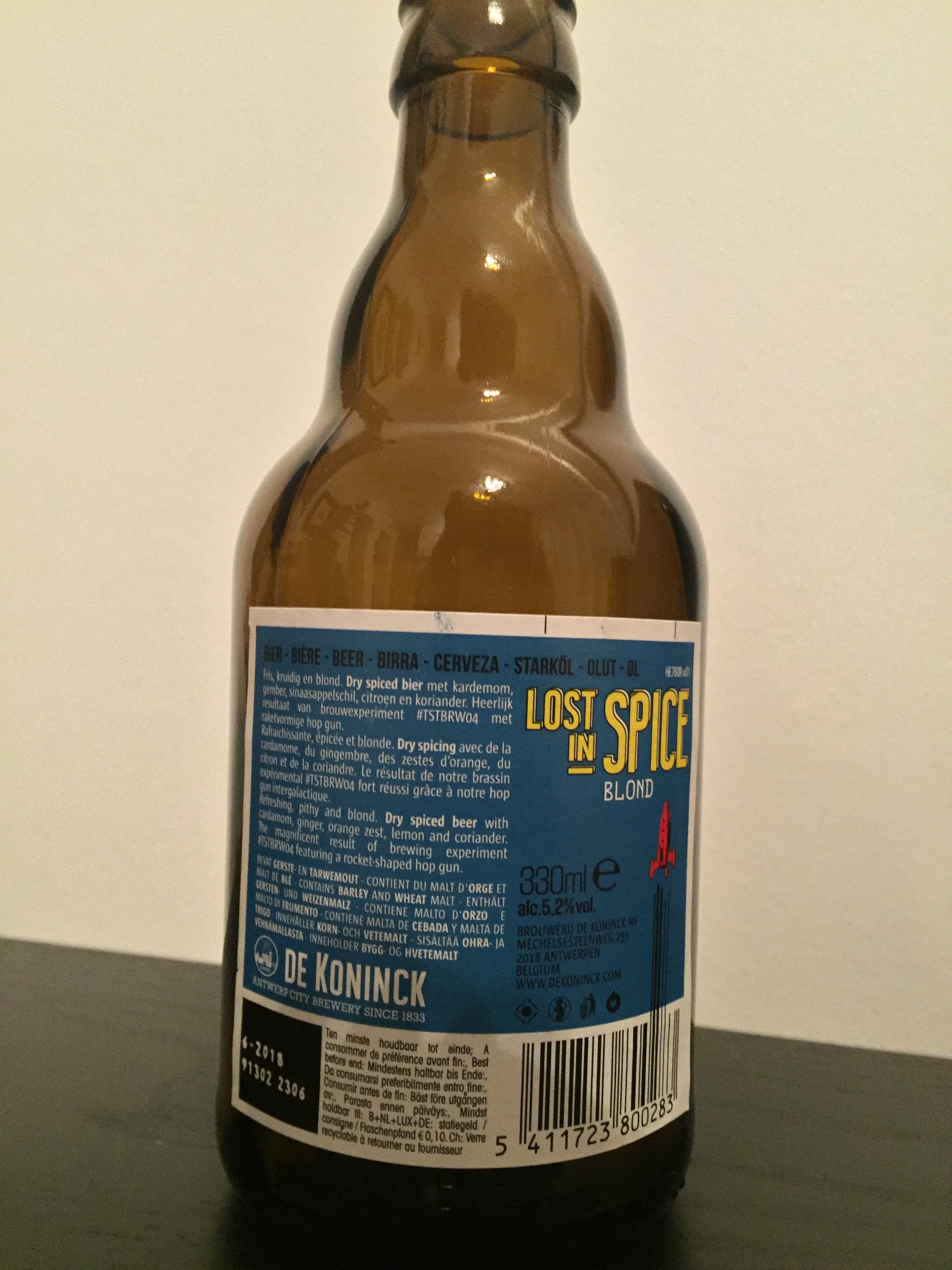 I used to live in Belgium and developed a love of Belgian beers during my time there. One of the better breweries is De Koninck based in Antwerp, the beers they produce are unfortunately not so commonly available outside of Belgium. I decided it was time to open this bottle of Lost in Spice which has been stored in my cellar for the last 2 years!