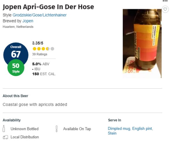 Beer Tasting - Gose ('Apri-Gose In Der Hose' by Jopen Brewery)