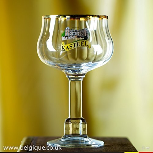 The glass is very special for this one. As you probably already know, each Belgian beer has its own glass. The Kasteel glass has, at the lower part of it, the castle that you can see in the logo. I add another picture for you so that you can see it better.