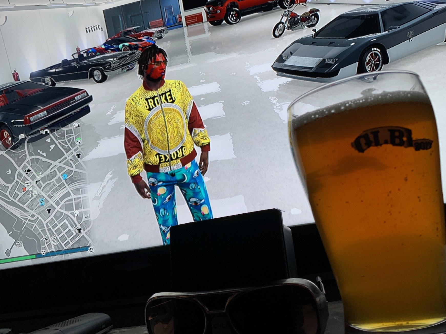 The game is Grand Theft Auto 5 https://www.rockstargames.com/V/ and this pint is Life In The Clouds IPA from Collective Arts Brewery https://collectiveartsbrewing.com/beers/life-in-the-clouds/. This beer is a special balance of hazy and unrefined, hoppy and sweet for such a solid and reliable taste. The fact that the local stores stock this year round and consistently makes it such a great go-to for the standard gaming nights that are regular. Consistently in my coveted top 10 and still makes me pause and say, "Man I forgot how good this beer is."