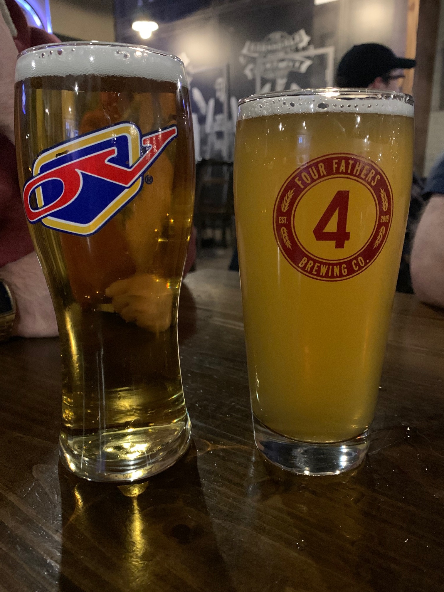 I can't keep you in suspense. I went with the Four Fathers IPA http://http://fourfathersbrewing.com/beers/ first. It would be a spoiler if I were to blog about this at a later date but it was a long evening of watching the UFC with friends from the Jiu Jitsu club so I had 1 of each.