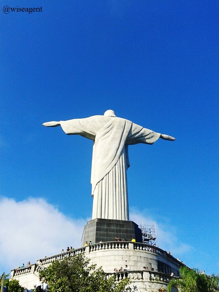 Depois de alguns transtornos pelo novo caminho (que poderiam ter sido evitados se eu tivesse preferido ir de trem, mas para mim ficaria inviável por causa da distância em relação ao lugar onde eu estava hospedado), nós finalmente chegamos lá. Mas até chegar aos pés do Cristo Redentor, os obstáculos continuaram. Na fila (que estava inacreditavelmente enorme!), o calor estava escaldante e ao longo de quase 3 horas esperando para ter acesso ao lugar, eu tive que ir várias ao banheiro porque eu havia tomado várias garrafas de água (sempre pedindo para alguém guardar o meu lugar, explicando que eu teria que me ausentar para ir ao banheiro).