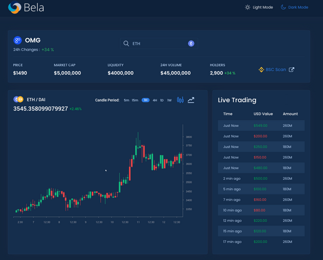 The Bela Token Team's dedication and teamwork has prepared the platform to launch the cleanest, easiest-to-use, and data-rich DEX charting system in the crypto world. DEX charts with next-generation features will be released and integrated into the Bela platform. On TradingView charts, users will be able to track their favorite tokens, chart them, and analyze them. The project is quite unique and distinct from others. I strongly encourage you to join.