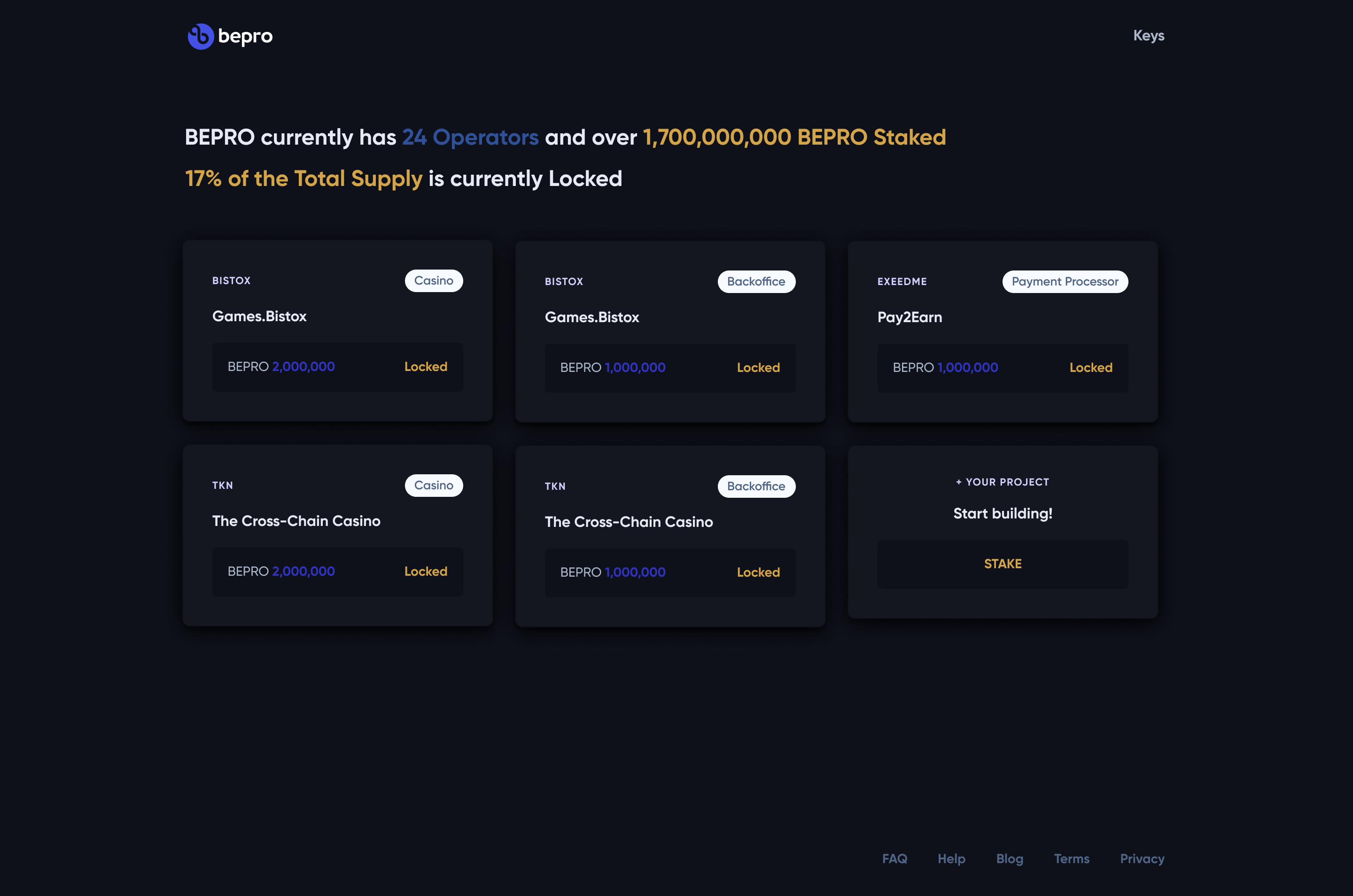 Visualização do Portal BEPRO On-Chain Staking