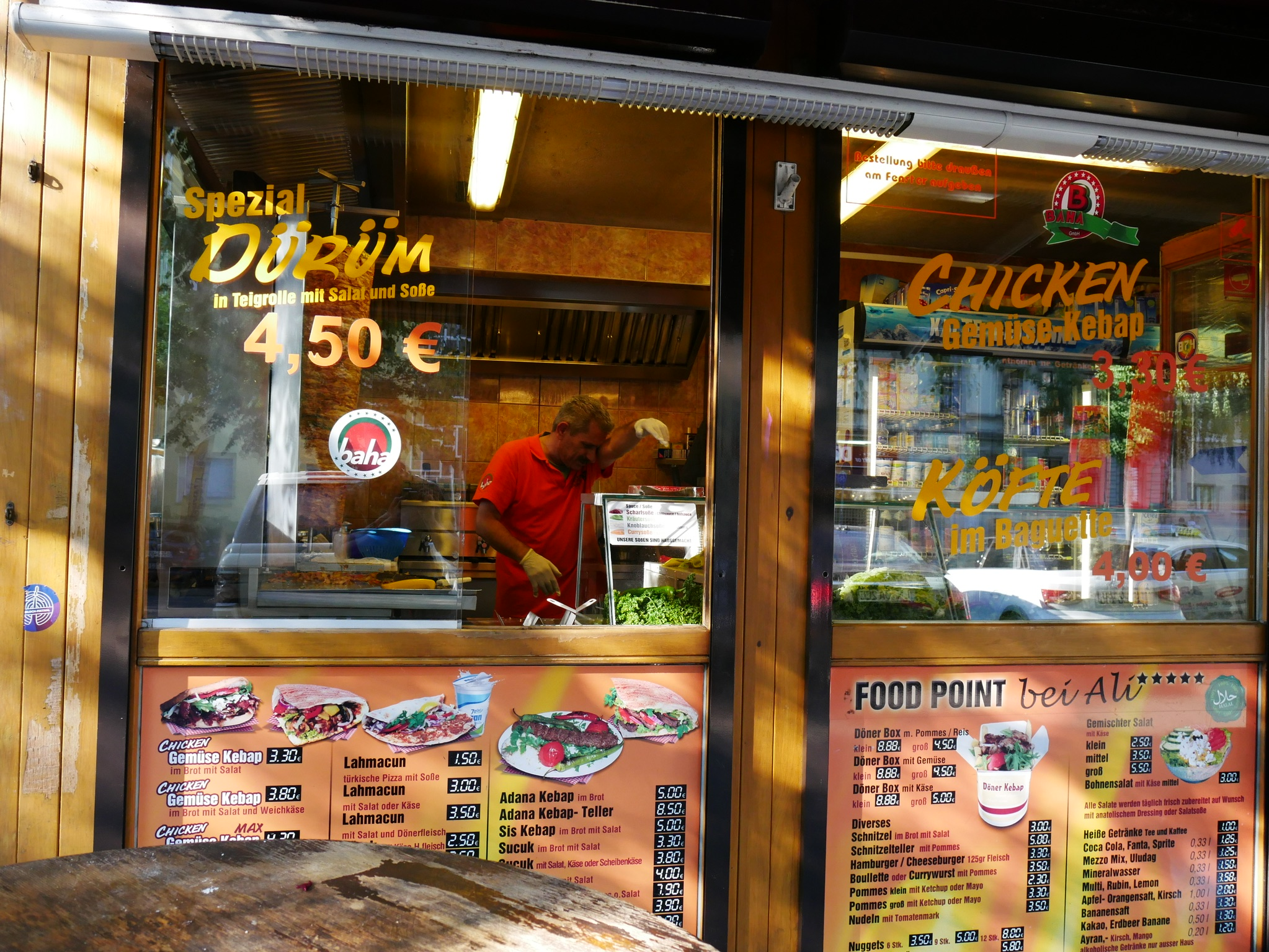I find Food Point bei Ali, a turkish kebab shop. When ordering a kebab in Germany they are are called a Dürüm Gemüse. Ali's kebab was delicious. Things were on the up. I decided to head out for a drink in East Berlin that evening, it is Saturday so why not. I find my way to Turmstraße station and head to Warschauer Straße on the U-Bahn. But that's a story for another post.
