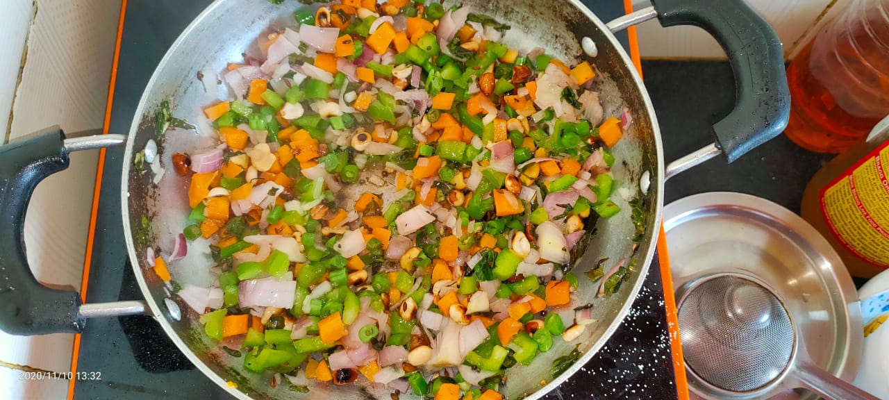 Step 5- Once vegetables will became slightly tender, then add salt, sugar.(remember upma has to be slightly salty, so adjust salt and sugar according to your taste).