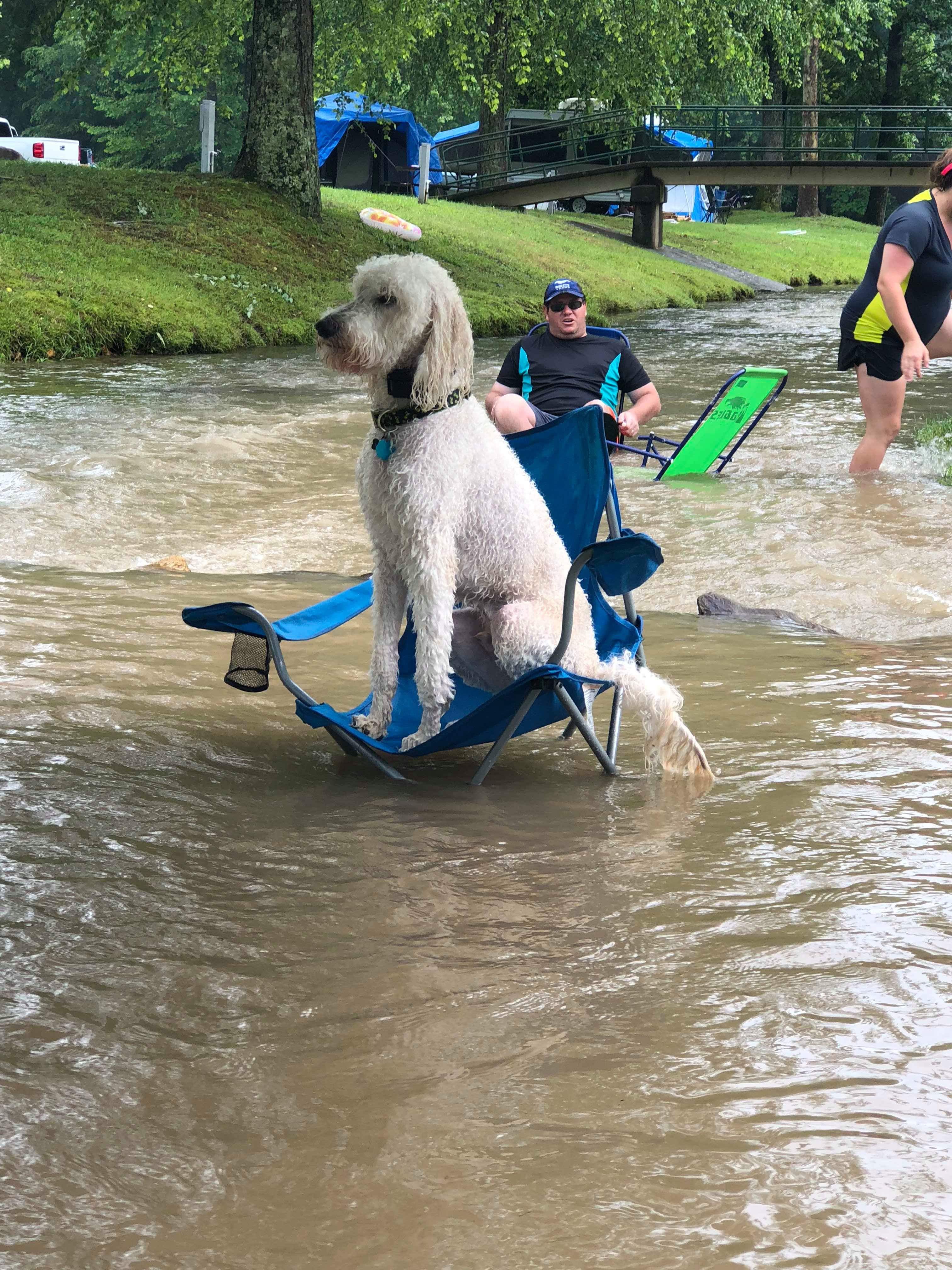 My Golden Doodle Lincoln camping, we had a shower pop up so we moved our chairs under the tent and he decided he needed to do the same. #spoiled #goldendoodle #manbestfriend