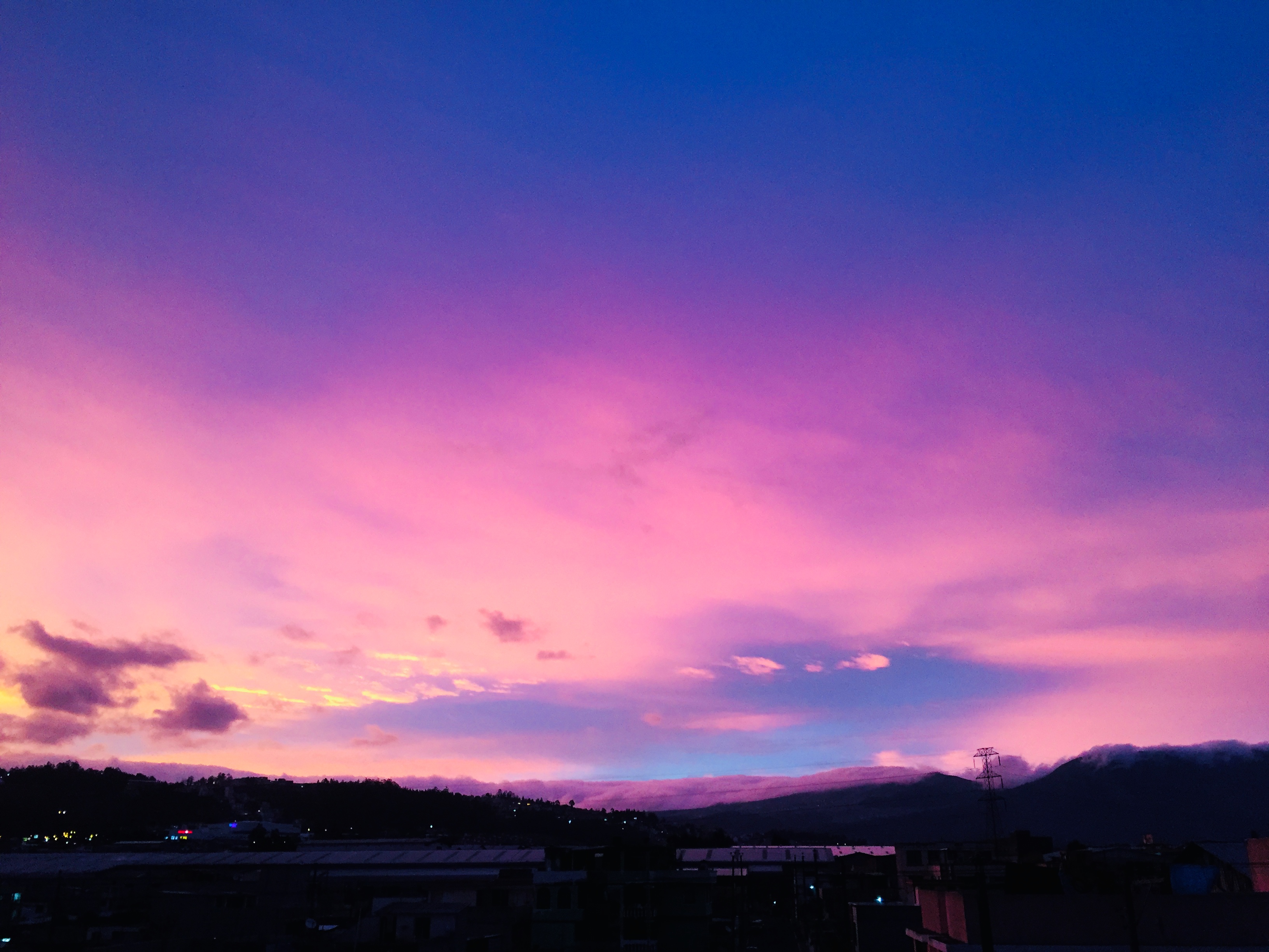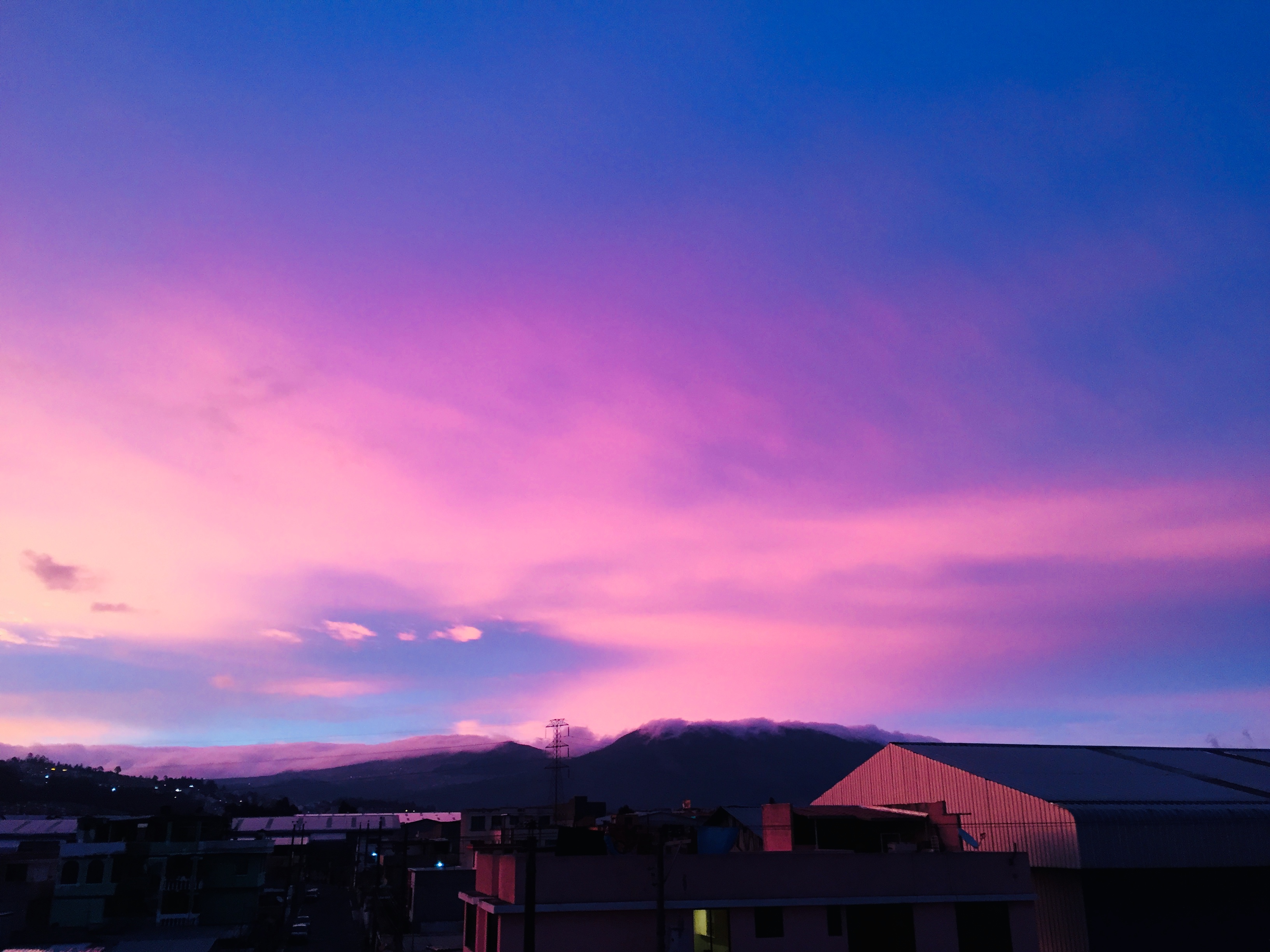 Hace días me dediqué a fotografiar el cielo de la hermosa capital del Ecuador, Quito. Fue un constataste maravilloso. Varias tonalidades, aparte del azul, podía ver el rosa, naranja y rojo que vestían este pedazo de cielo.