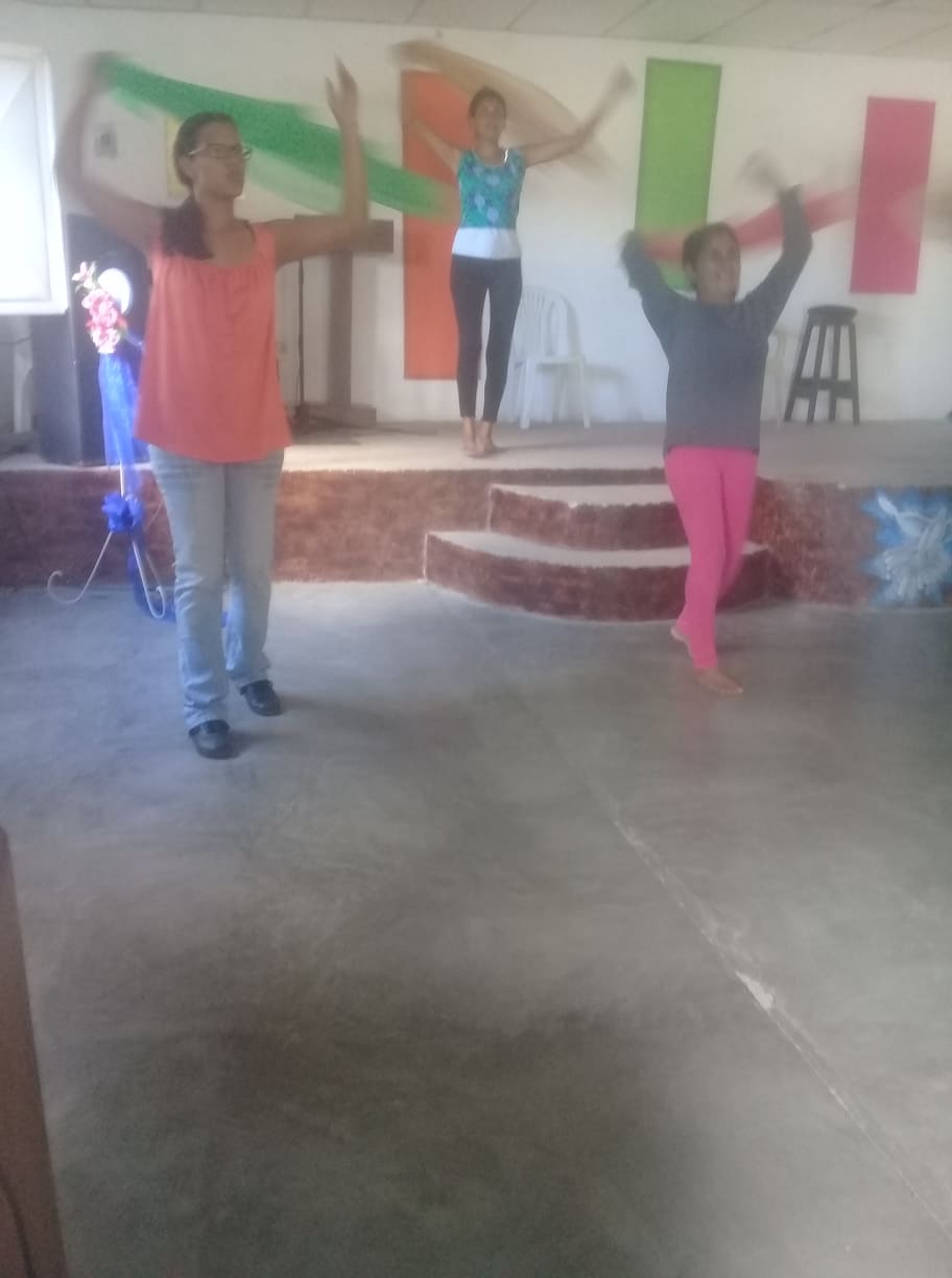 Con algunas danzarinas ensayando en la iglesia evangélica donde me congrego