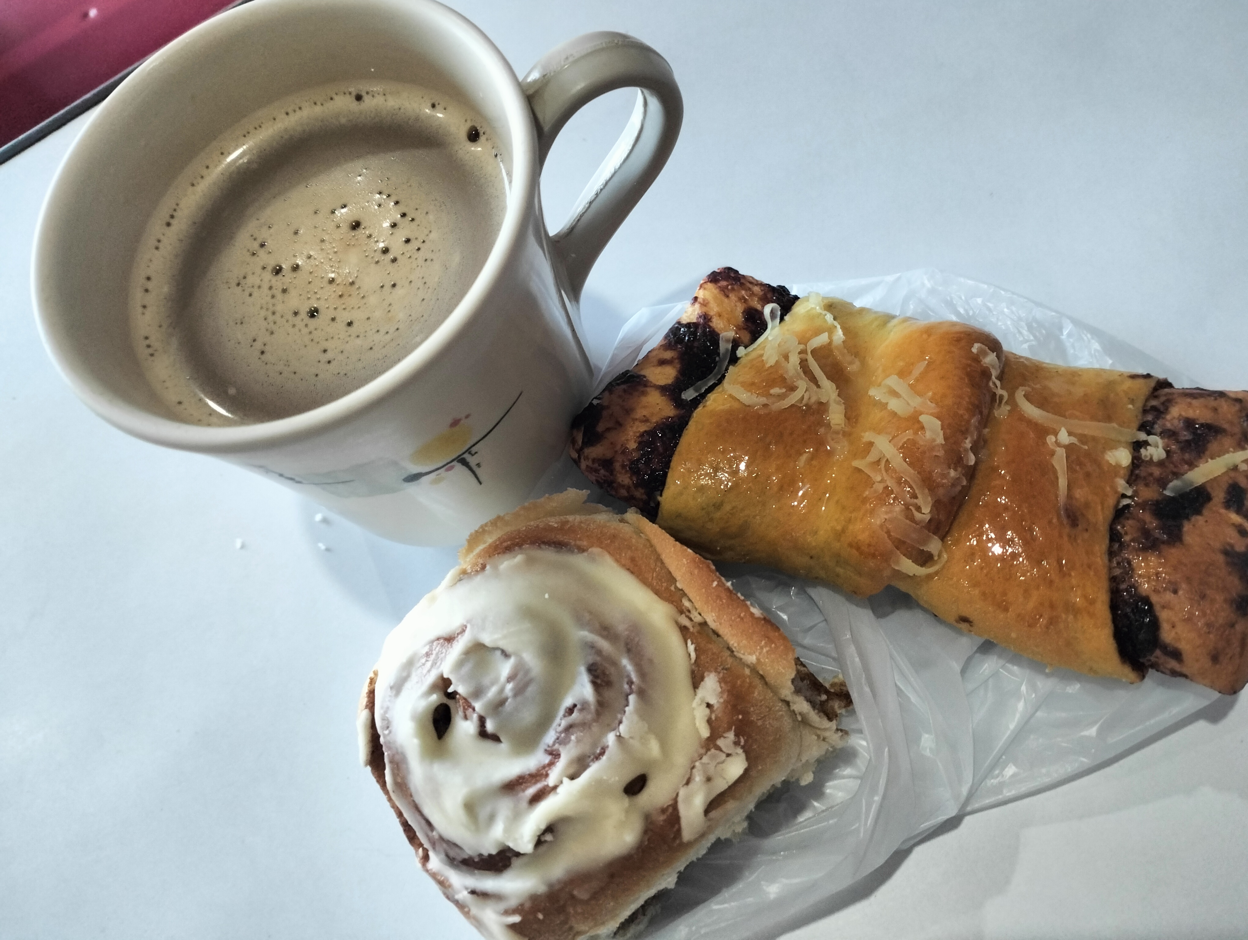 I fed myself with Choco bread and cinnamon roll together with a hot coffee at Butterbays Bakeshop. It was not my usual menu. It was delicious.