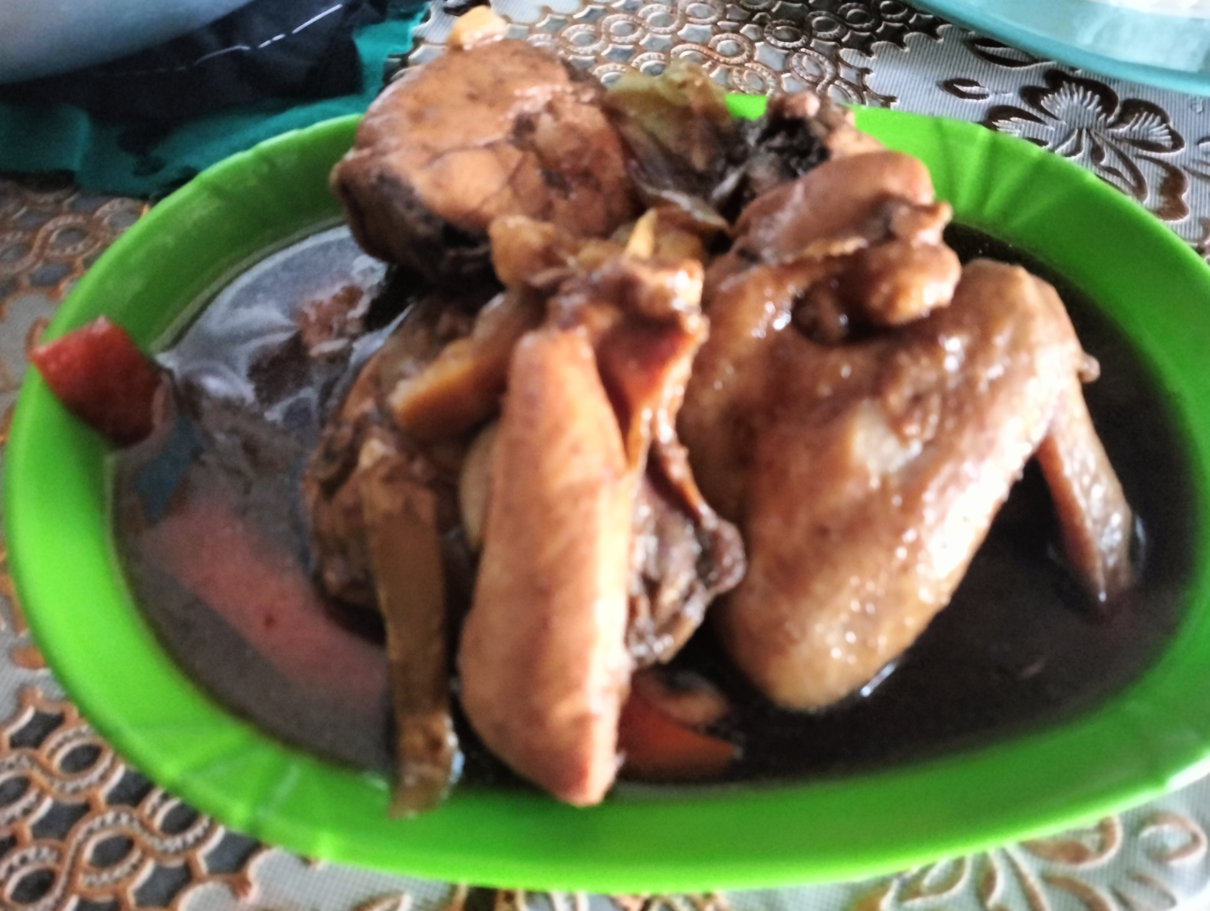 Then I bought chicken meat worth 200 pesos (56.81 STEEM) , onion, garlic, vinegar, and soy sauce. I cooked chicken adobo for our lunch.
