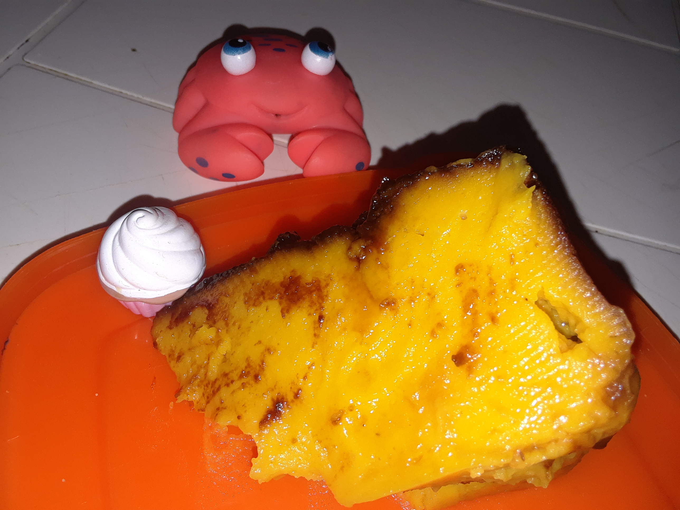 El dia de hoy me levante con mucho animo y energia, le realice un rico desayuno a mi familia el amuerzo.... me vine para mi consultorio y le deje este delicioso postre a mi hija ya decorado y muy saluable quesillo de auyama....
