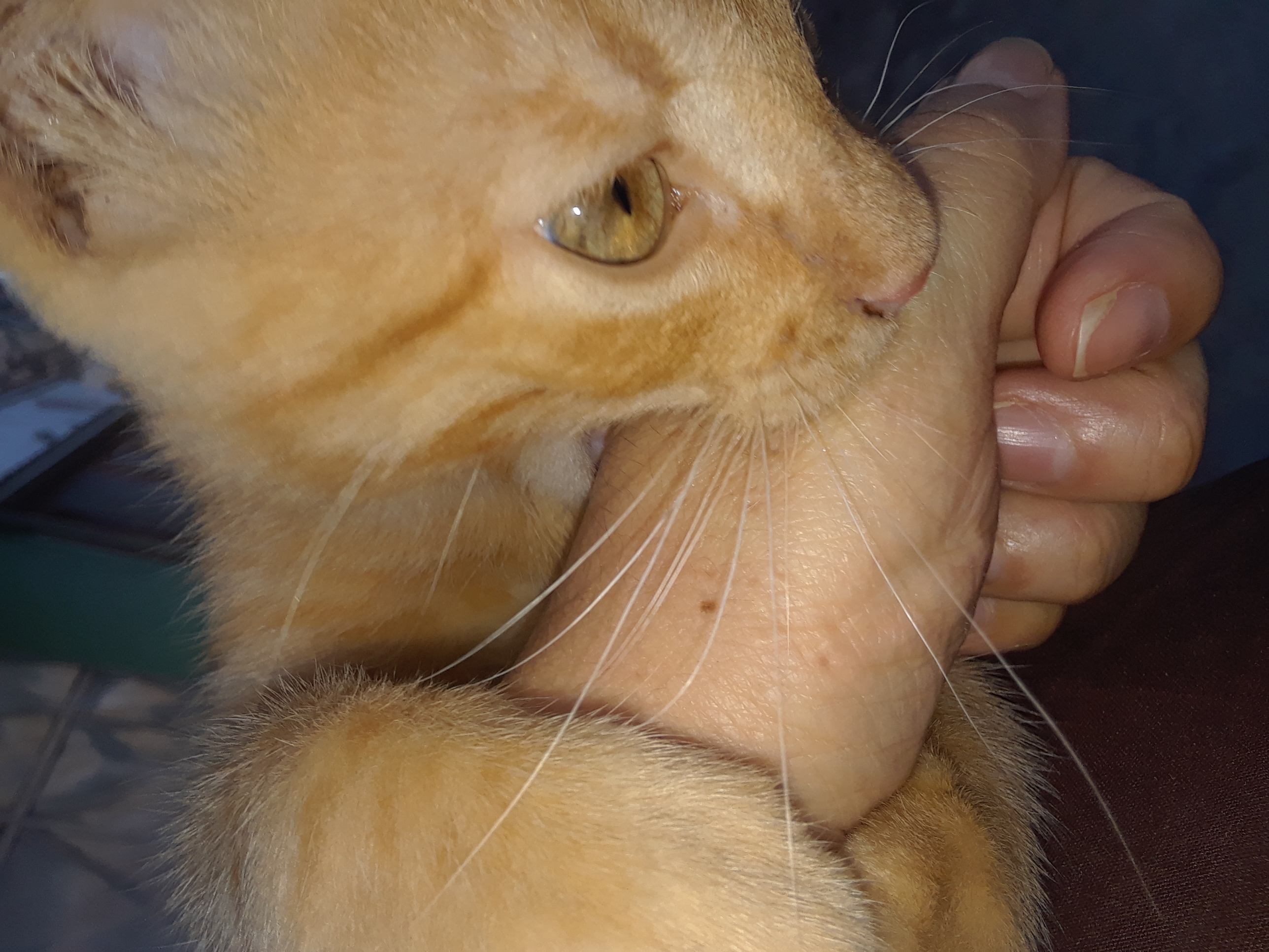 Y bueno mientras yo espero aparecio este gatito muy tremendo y jugueton, de la nada me brinco a mi pantalon y empezo a jugar; quede con mi mano un poco marcada pero el gato estaba feliz.