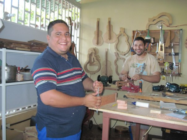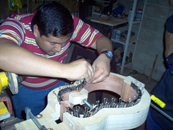 Mauricio Oropeza estudiante de luthería. Foto de mi pertenencia.