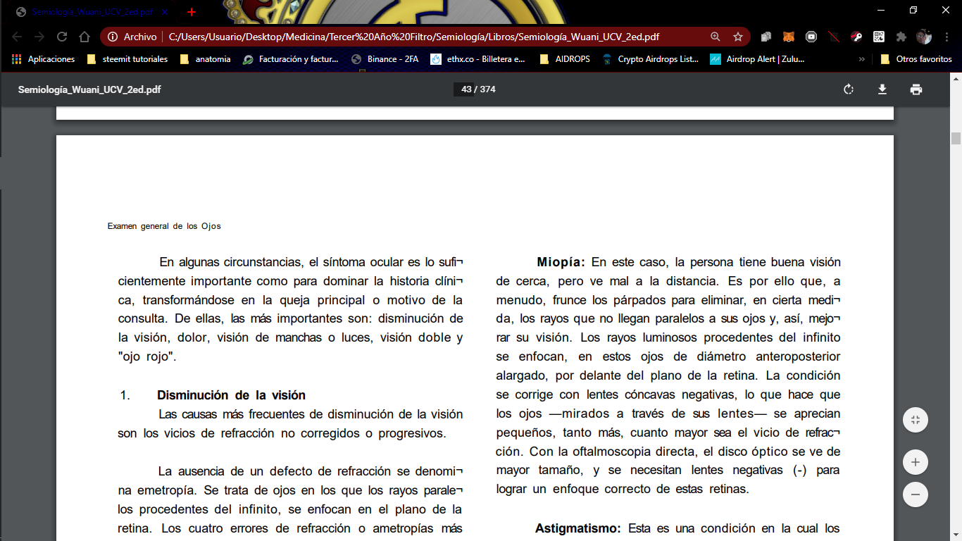 El tema era extenso pero me gusto el hecho de las enfermedades de refracción porque sufro de miopía y me pareció muy interesante sabe más de eso como del tipo de lentes según el problema. Con una hora estudiando no abarco ni el 20% del tema así que me levante un momento a tomar agua y en ese instante se apago la computadora así que me toco esperar un instante porque dicha computadora es un poco molesta en ese sentido.