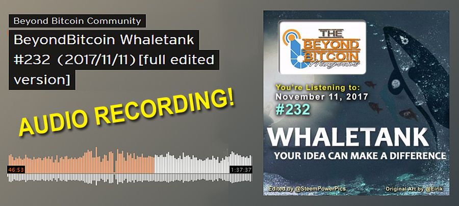 📻 Audio Only Recording of BeyondBitcoin Whaletank Hangout #232 on November 11, 2017 edited by @SteemPowerPics