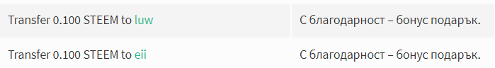 В знак за най-искрена благодарност трансферирах по 0.1 STEEM на @eii и @luw , за жеста им да рестиимнат публикацията ми.